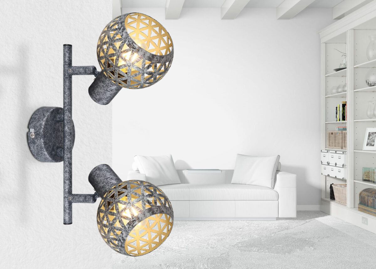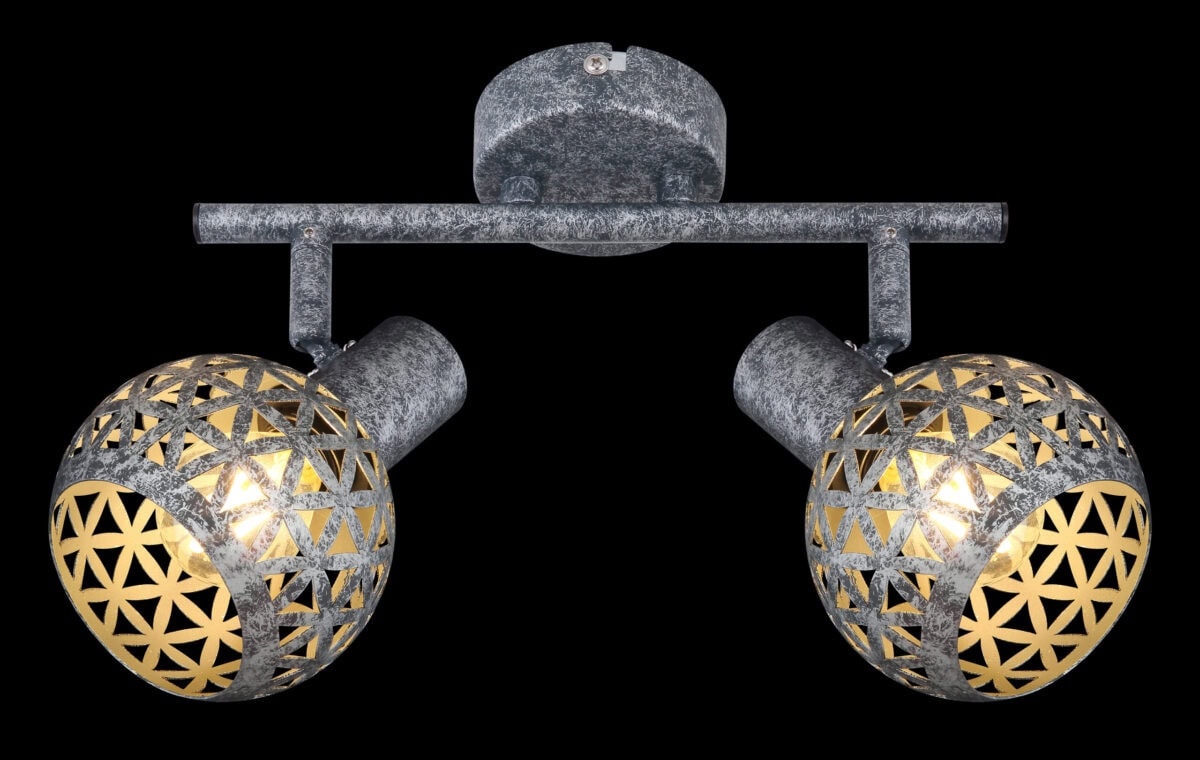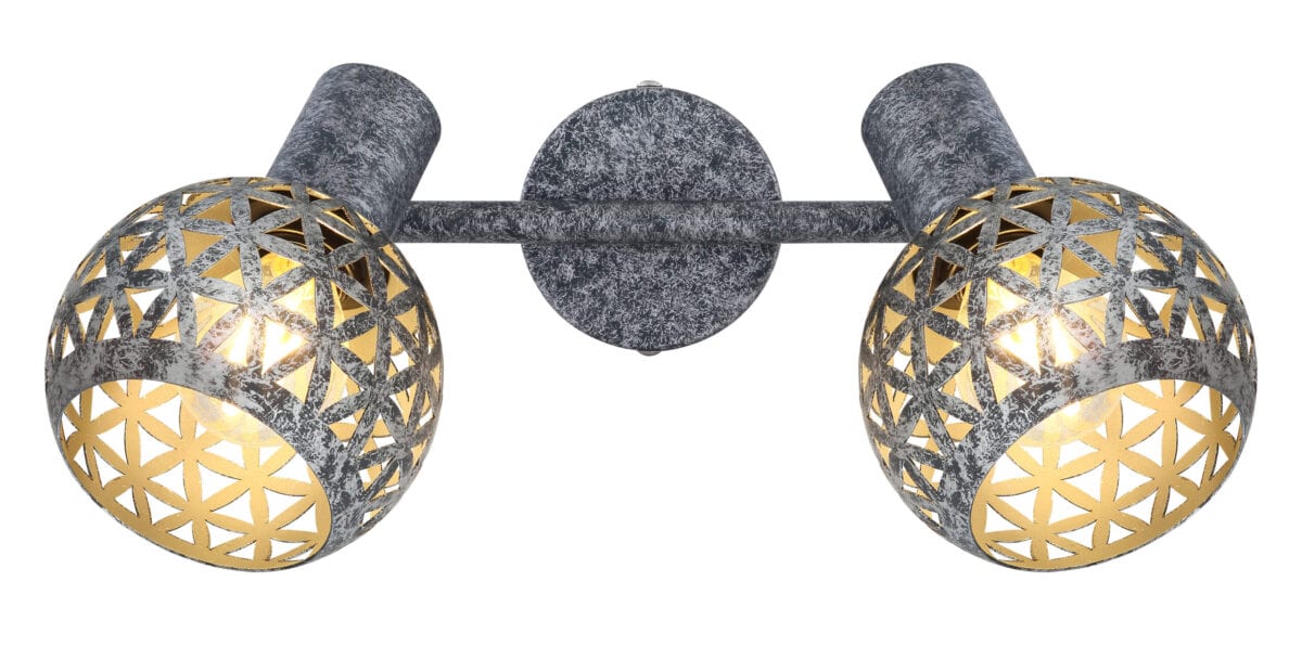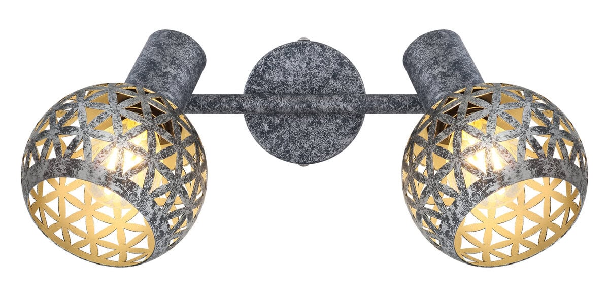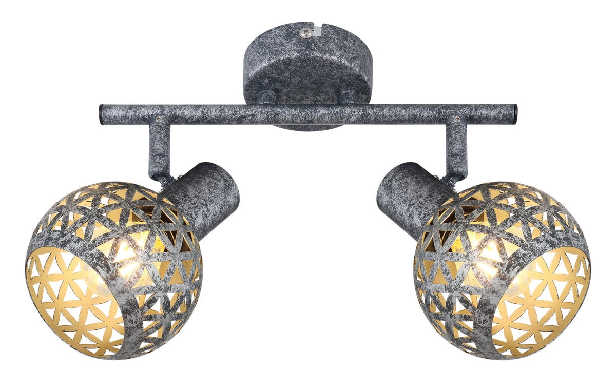 Ovaj dvostruki reflektor iz serije Lela (40,2×10 cm) uvjerava svojim prekrasnim dizajnom od antikno sivog metala. Sastoji se od metalne šipke na kojoj su raspoređene dvije E27 utičnice koje su opremljene lijepo zakrivljenim prema van zakrivljenim metalnim sjenilom sa trokutastim udarcima. One mogu biti opremljene odgovarajućim lampama po vašem izboru, što vam daje mogućnost da individualno odredite boju svjetla i svjetlinu. Sa ostalim modelima iz iste serije možete upotpuniti cjelokupnu sliku u svom interijeru i pružiti moderan ambijent.