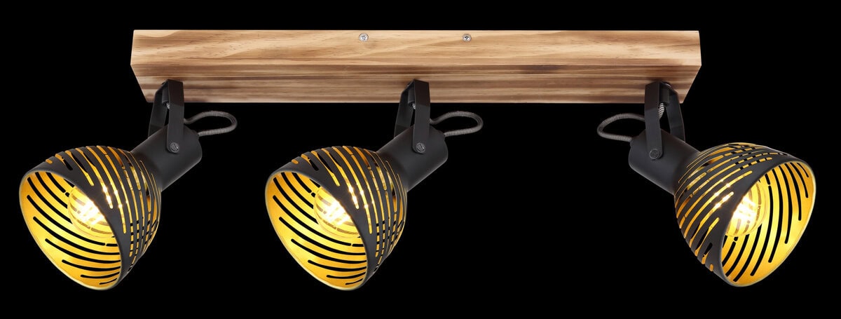 Ovaj reflektor iz serije Lenna (54×12,5 cm) odlično se uklapa u ambijent različitih stilova življenja. Sastoji se od tamno smeđe drvene grede, koja je opremljena sa tri zakretne, crne metalne sjenila sa linearnim udarcima. One su iznutra zatamnjene zlatno i mogu se opremiti sa E27 sijalicama po vašem izboru, dajući vam mogućnost da individualno odredite boju svjetla i svjetlinu. Sa ostalim modelima iste serije možete upotpuniti cjelokupnu sliku u svoja četiri zida.