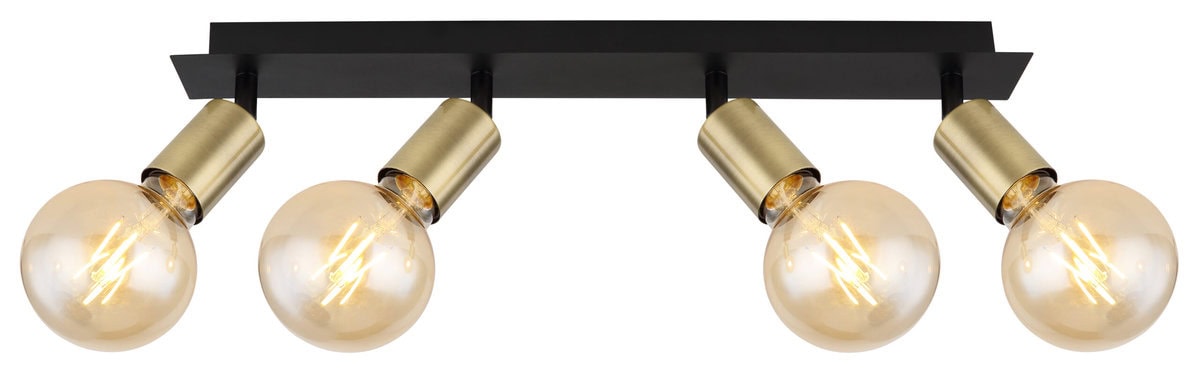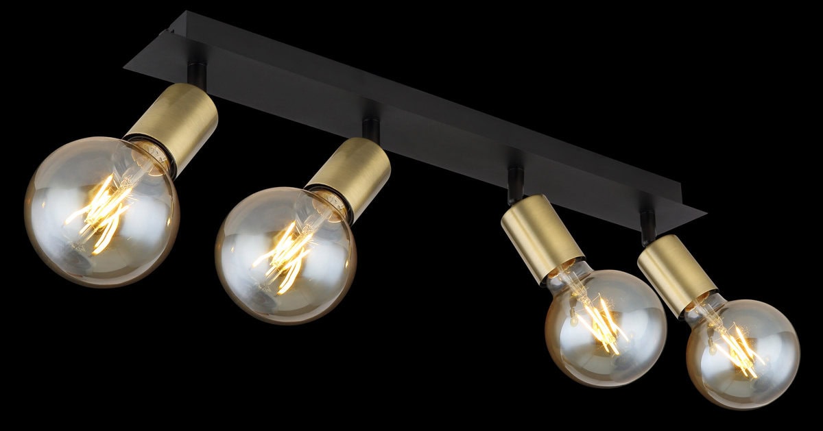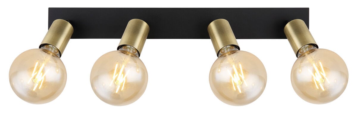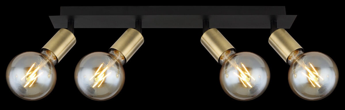 Ovaj prekrasni reflektor inspirira sjajnim dizajnom. Na uskom crnom mat metalnom kućištu (50x6cm) nalaze se četiri E27 utičnice u prekrasnom starom mesinganom dizajnu. Oni vam ostavljaju slobodan izbor, do maksimalne snage od 40 vati, da sami odredite boju svjetla i svjetlinu.