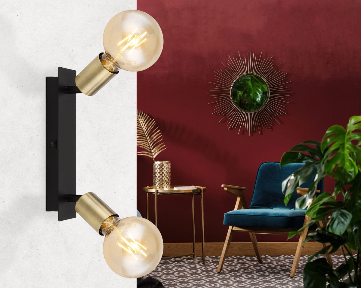 Ovaj prekrasni reflektor inspirira sjajnim dizajnom. Na uskom crnom mat metalnom kućištu (25x6cm) nalaze se dvije E27 utičnice u prekrasnom starom mesinganom dizajnu. Oni vam ostavljaju slobodan izbor, do maksimalne snage od 40 vati, da sami odredite boju svjetla i svjetlinu.