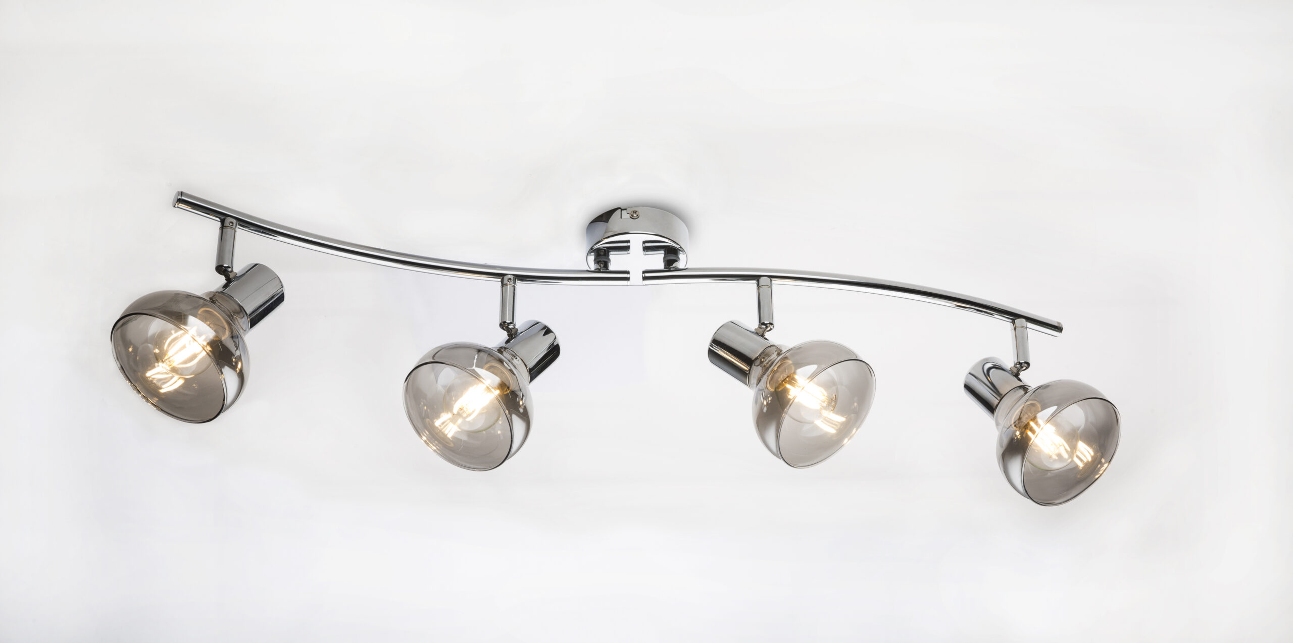 Bezvremenska i elegantna serija reflektora Lothar jasno daje rezultate svojom kombinacijom materijala. Četiri pomične tačke ovog plafonskog reflektora, pričvršćene na dva ravna kraka, sastoje se od prekrasnih i oblikovno dimljenih staklenih sjenila koje pružaju uzbudljivo svjetlo. Odgovarajući hromirani metal ovog reflektora upotpunjuje sliku i čini ga pravim privlačnim za oči. Svaki reflektor ima E14 utičnicu, koja vam omogućava da sami odredite izvor svjetlosti, a time i intenzitet svjetlosti i boju svjetla (maks. 40W). Sa ostalim modelima ove serije možete upotpuniti sliku u Vašim prostorijama.