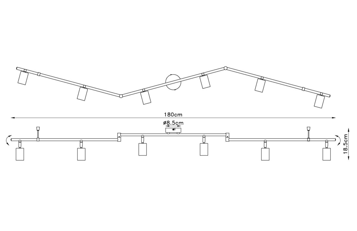 Sa plafonskim reflektorom sa šest plamenova, dužine 1,8 m, nijedan čvrsti ugao više ne ostaje taman, jer se reflektori mogu okretati. To rezultira mnogim mogućim primjenama u cijelom životnom prostoru. Svojim modernim vintage dizajnom u potpunosti je u skladu s trendom i može se integrirati u mnoge suvremene varijante opremanja. Slobodnim odabirom izvora svjetlosti (E27 /max. 60W) možete sami odrediti intenzitet svjetla i boju svjetla ove unutrašnje svjetiljke. Zbog dugotrajnosti i uštede energije preporučujemo LED sijalice. Sa ostalim modelima ove serije možete dodatno uljepšati životni prostor.