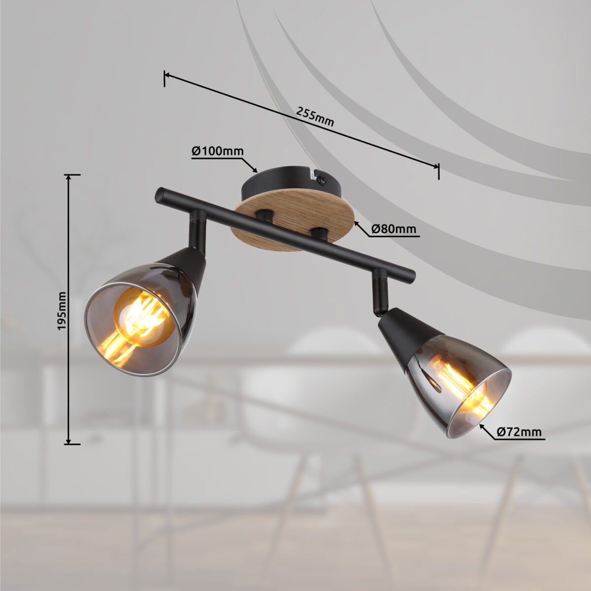 Otkrijte harmoničnu kombinaciju stila i prirode uz MUBBY! Izrađeni od crnog mat metala, smeđeg drveta i dimljenog stakla, naši reflektori će vašoj sobi dodati dašak elegancije. Sa izdašnim dimenzijama od 255x100x195mm (dužina x širina x visina), MUBBY reflektor postaje privlačan za oči u svakoj prostoriji. Toplo drvo i staklo u boji dima stvaraju ugodno svjetlosno raspoloženje i daju vašem domu ugodnu atmosferu. E14 utičnice vam omogućavaju da sami odredite boju svjetla i svjetlinu do maksimalne snage od 25 vati. Unesite ljepotu prirode u svoj dom uz MUBBY i uživajte u jedinstvenom iskustvu osvjetljenja!