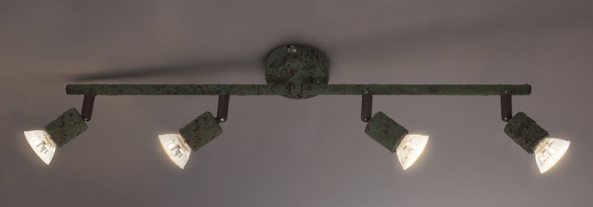 Plafonski reflektor serije Olana jasno se ističe svojim individualnim dizajnom. Napravljen od zelenog metala boje hrđe, ovaj reflektor daje vašim prostorijama poseban štih. Četiri pomične tačke, pričvršćene na dva ravna kraka, svaka imaju 3W GU10 LED sijalicu, koje zajedno daju 1000 lumena jakog svetla sa prijatnom toplom belom svetlošću od 3000K. Sa ostalim reflektorima iste serije modela možete upotpuniti sliku u svom prostoru.