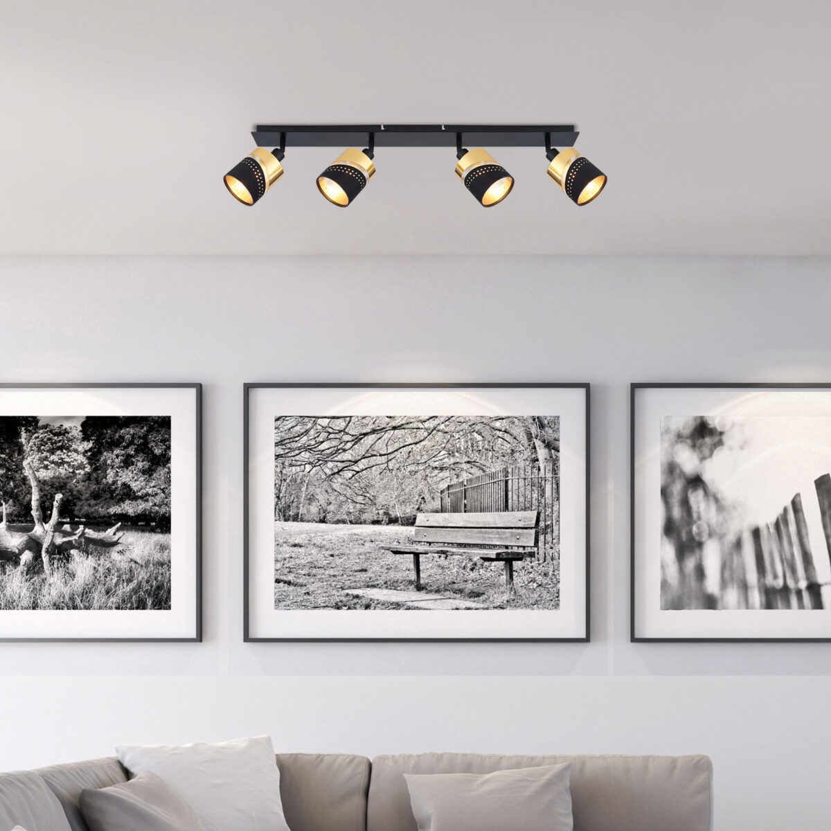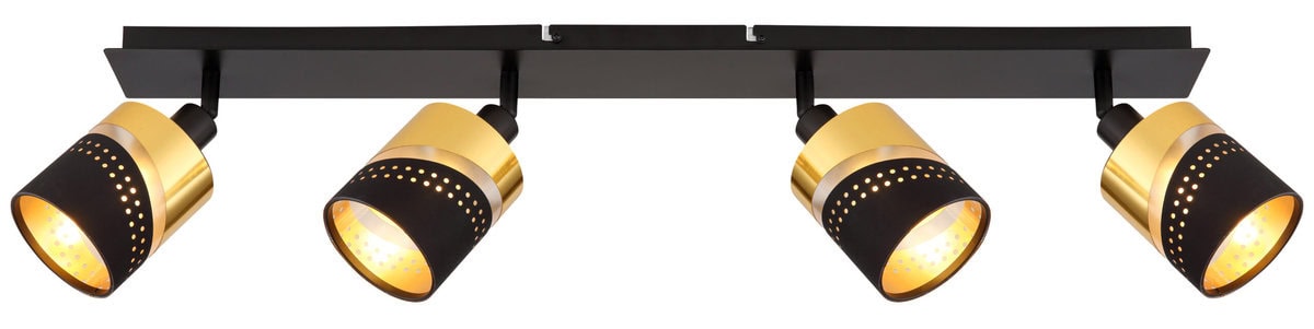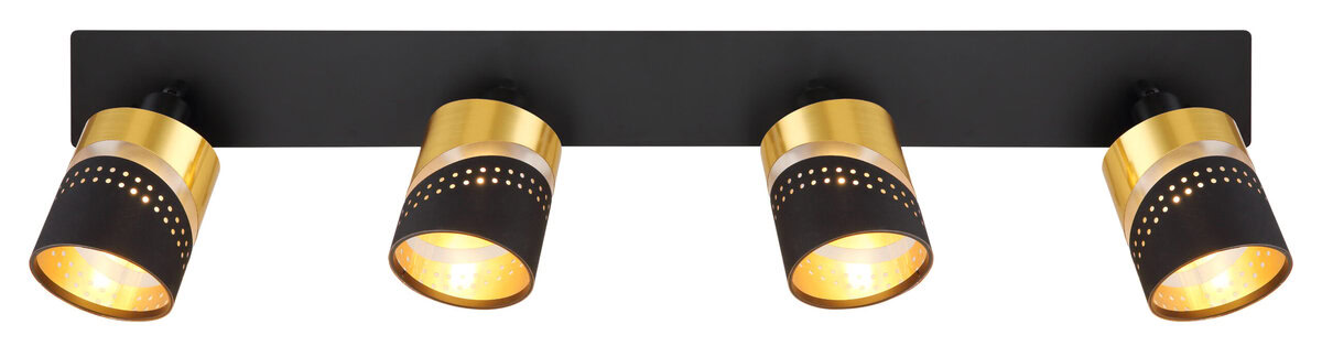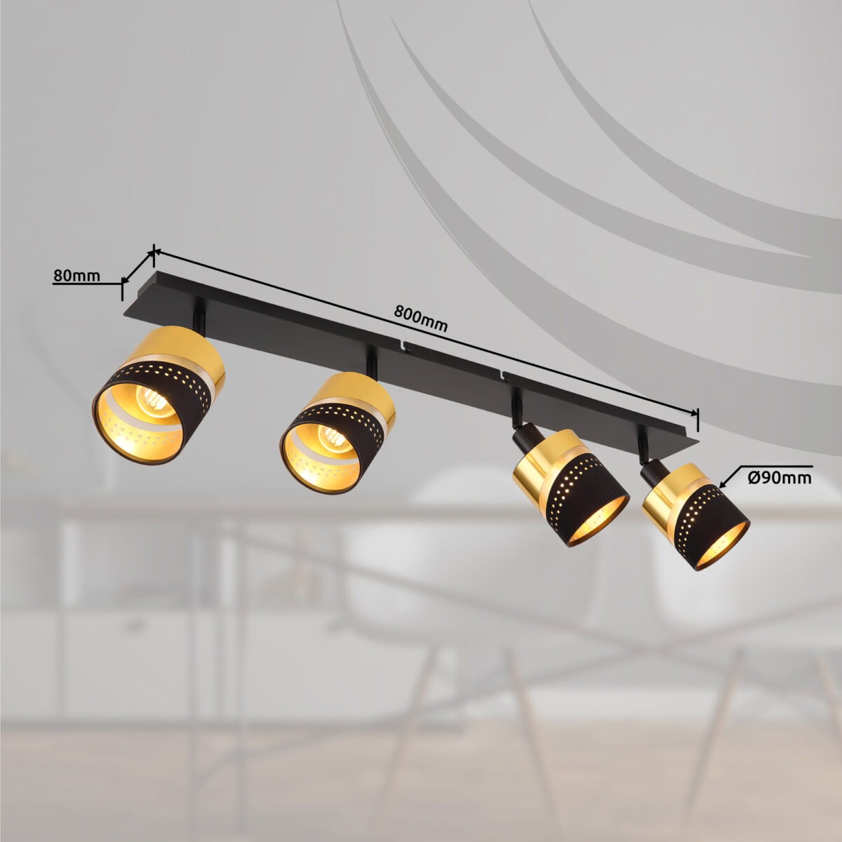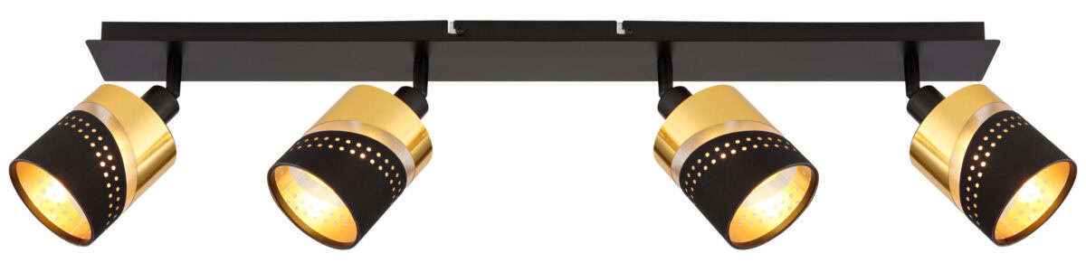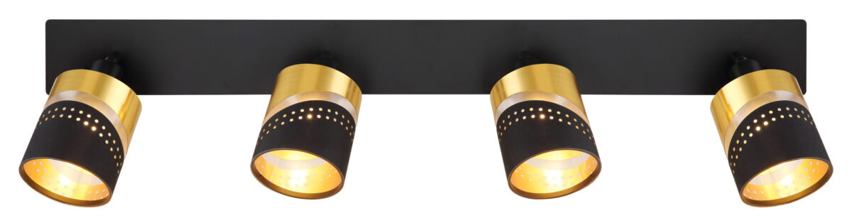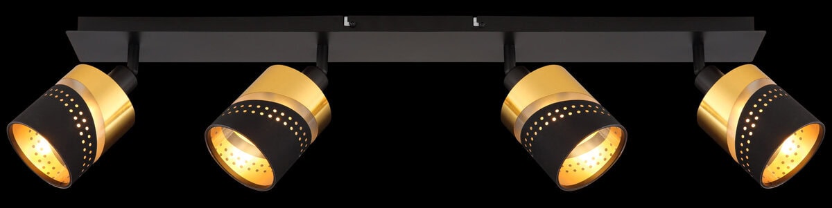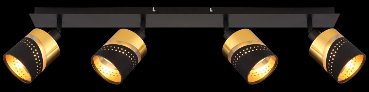 Elegantan reflektor koji će dati toplu atmosferu vašoj sobi. Reflektor je izrađen od mat crnog metala i crnog tekstilnog sjenila koji nježno filtrira svjetlost. Plastika zlatne boje na unutrašnjoj strani sjenila pruža ugodno svjetlo. Sa dužinom od 800 mm, širinom od 90 mm i visinom od 205 mm, ovaj reflektor je pravi reflektor u svakoj prostoriji. Napominjemo da se reflektor isporučuje isključivo 4x E14 25W 230V. Nadamo se da sa ovim reflektorom možete podići svoje sobe na novi nivo!