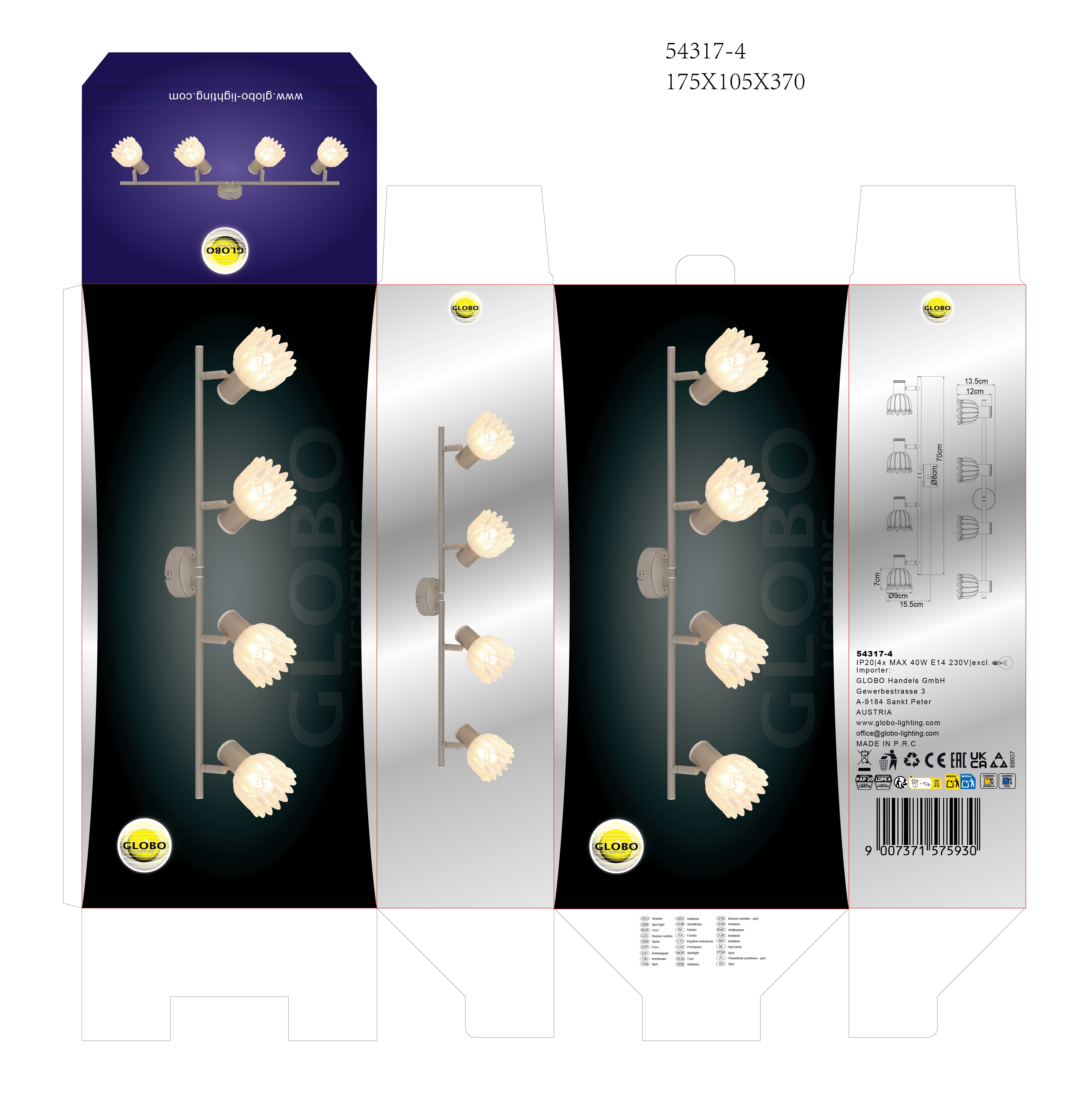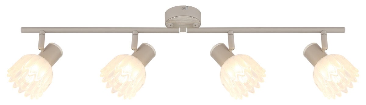 Izduženi reflektor PLANTA sa dva ravna, pokretna kraka kombinuje prirodnu eleganciju sa raznovrsnom funkcionalnošću. Mat metalno kućište boje pijeska upotpunjeno je laganim elementima izgleda drveta, dajući uređaju topao i privlačan izgled. Sjenila od matiranog cvjetnog stakla pružaju meku i ravnomjernu distribuciju svjetlosti, ugodno osvjetljavajući svaku prostoriju. Sa dužinom od 700 mm i širinom od 90 mm, ovo svjetlo je idealno za veće hodnike, dnevne ili radne prostore. Dva podesiva reflektora omogućavaju fleksibilan smjer svjetlosti, omogućavajući ciljane svjetlosne akcente. Svjetlo je dizajnirano za E14 sijalice (nisu uključene), što omogućava individualni izbor boje svjetla i svjetline. PLANTA impresionira visokokvalitetnim materijalima, promišljenim dizajnom i modernom tehnologijom – moderno i praktično rješenje za rasvjetu za vaš dom.