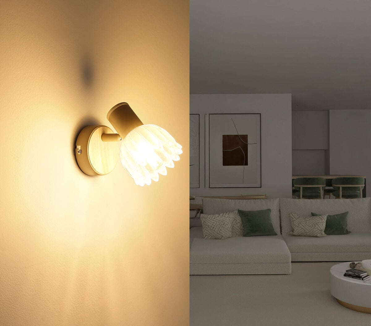 Zidna lampa PLANTA unosi prirodni šarm i suptilnu eleganciju svakom zidu. Njegova okrugla stražnja ploča u mat boji pijeska u kombinaciji s akcentima u izgledu svijetlog drveta daje dizajnu topao, ugodan izgled – idealan za hodnike, spavaće sobe ili dnevne sobe. Satensko staklo s cvijećem pruža ugodnu, meku distribuciju svjetlosti i naglašava stilski efekat lampe. Sa širinom od 90 mm i projekcijom od 125 mm, PLANTA je kompaktna i raznovrsna – pogodna kao pojedinačni reflektor ili u kombinaciji sa drugim lampama iz serije. Reflektor je podesiv, omogućava ciljano osvjetljenje. Lampa je dizajnirana za sijalicu E14 (nije uključena), omogućava individualno podešavanje boje i svjetline svjetla. PLANTA impresionira harmoničnim dizajnom, visokokvalitetnim materijalima i fleksibilnim aplikacijama – dekorativno rasvjetno rješenje s prirodnim dodirom.