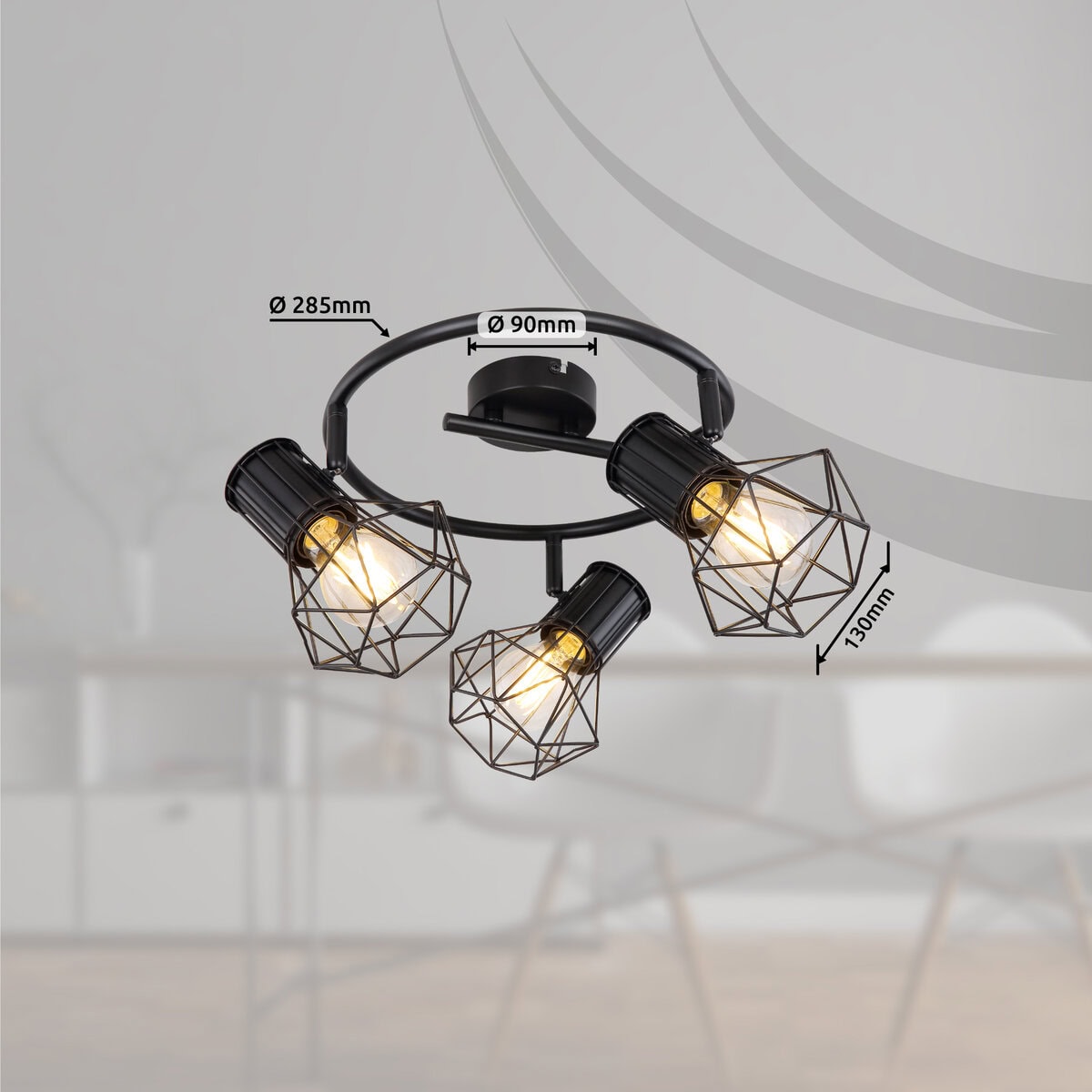 Stropni reflektor iz serije Priska uvjerava svojim elegantnim dizajnom. Tri pokretne crne metalne rešetke u obliku dijamanta pričvršćene za ruku u obliku e trebale bi privući svačiju pažnju. Svaki spot je opremljen sa E27 utičnicom, koja vam omogućava da odaberete pravi izvor svjetlosti za vas (maks. 40W) i na taj način odredite boju svjetla i intenzitet svjetlosti. Zbog uštede energije i dugovečnosti preporučujemo LED sijalice. Uz dodatne reflektore iz ove serije možete upotpuniti sliku u svoja četiri zida.