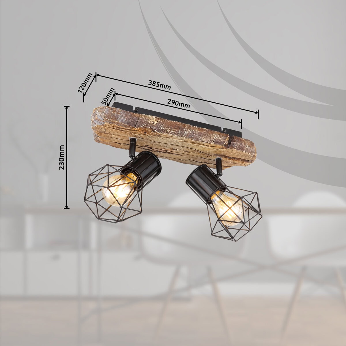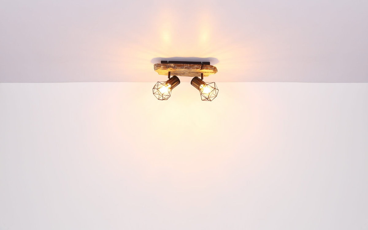 Ovaj bezvremenski reflektor serije Priska inspiriše prelepim izgledom drveta u kombinaciji sa modernim dizajnom. Sastoji se od dva crna metalna rešetkasta kišobrana, svaki sa E27 utičnicom koja visi 23cm od plafona i pričvršćena je za štit (38,5x12cm) od prelepog izgleda drveta. Uz pomoć grla E27 imate mogućnost korištenja sijalice do maksimalne snage 60 vati. Uz ostale modele iz ove serije možete dodatno uljepšati svoj dnevni boravak.