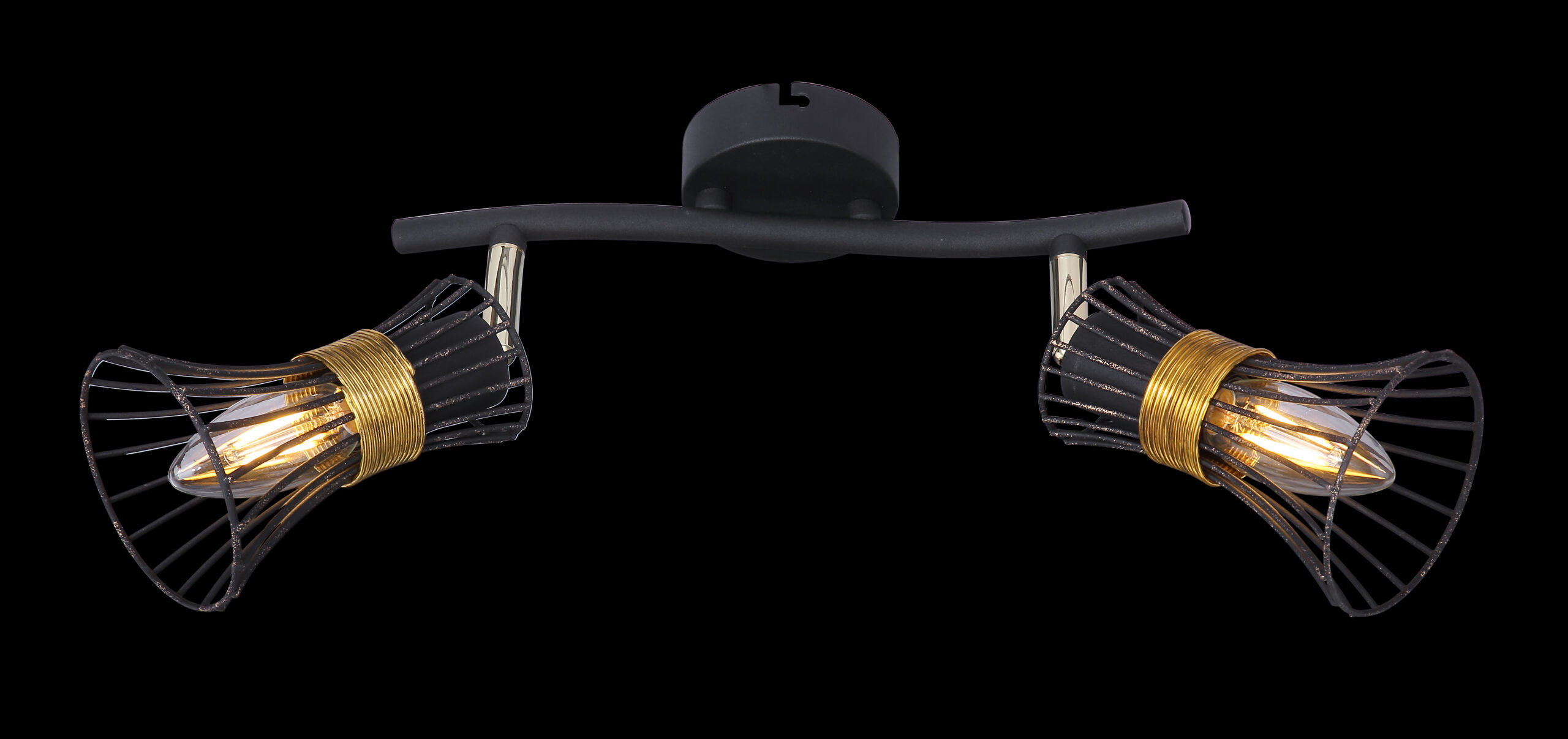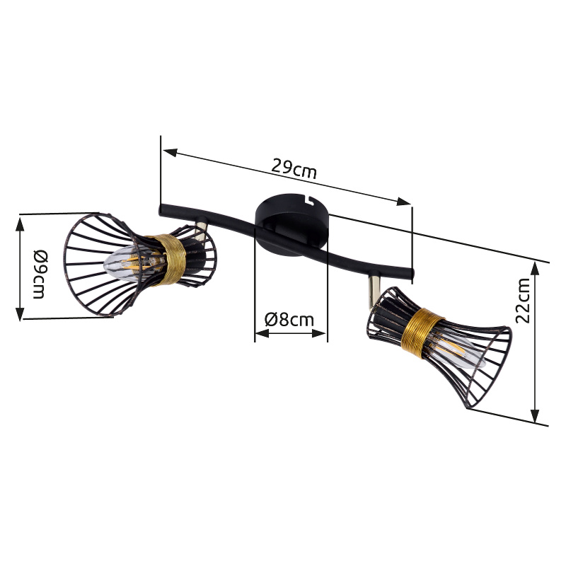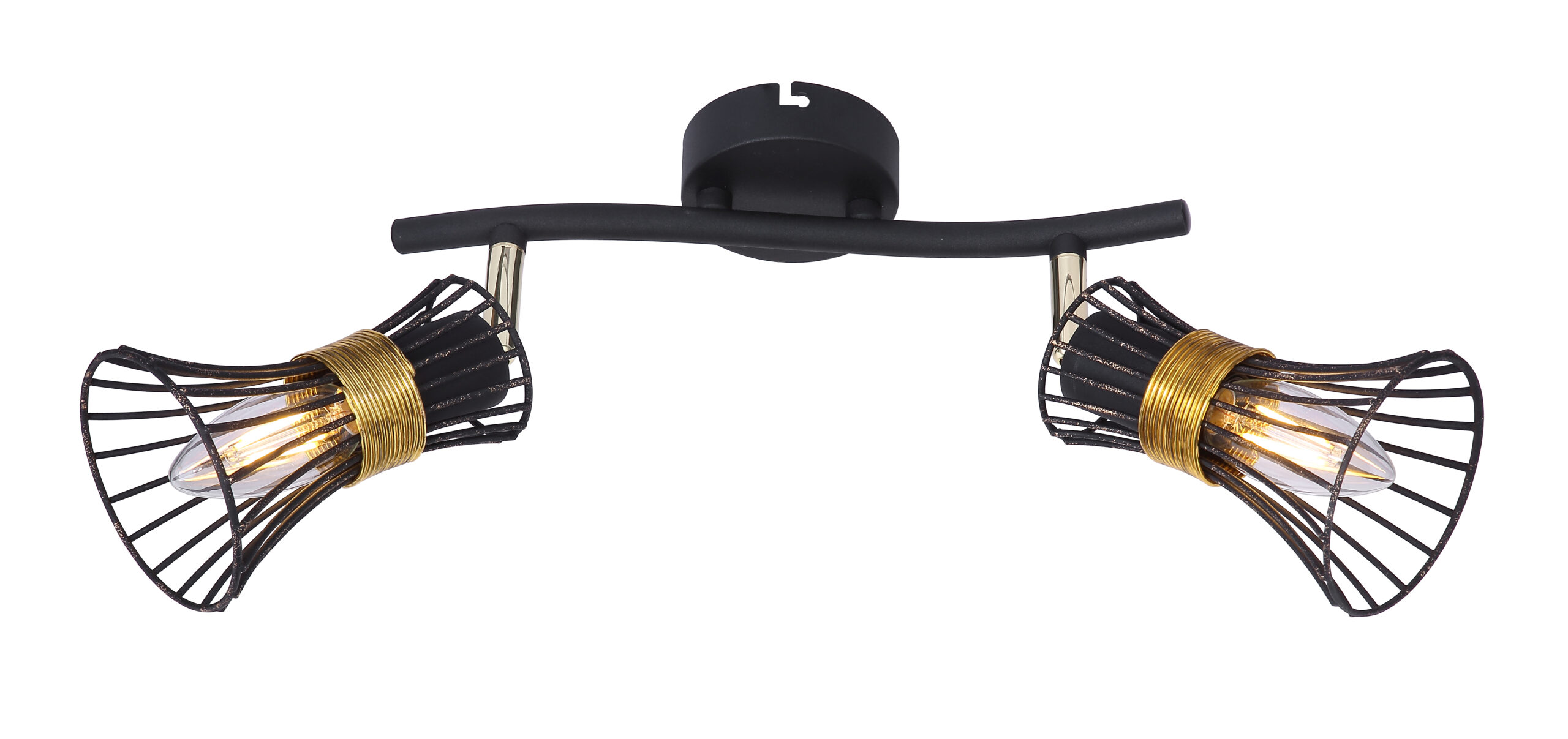 Plafonska lampa iz porodice proizvoda PURRA uvjerava kombinacijom crnog i metala zlatne boje. Dva reflektora ograđena su crnim rešetkastim šipkama sa omotanim zlatnim nitima. Fleksibilni reflektori su pričvršćeni na blago zakrivljeni spoj i cijela prostorija može biti fokusirano osvijetljena. Navoj E14 omogućava slobodan izbor sijalice (maks. 40 vati). Zbog dugotrajnosti preporučujemo LED sijalice. Sa ostalim modelima ove serije možete dodatno uljepšati životni prostor.