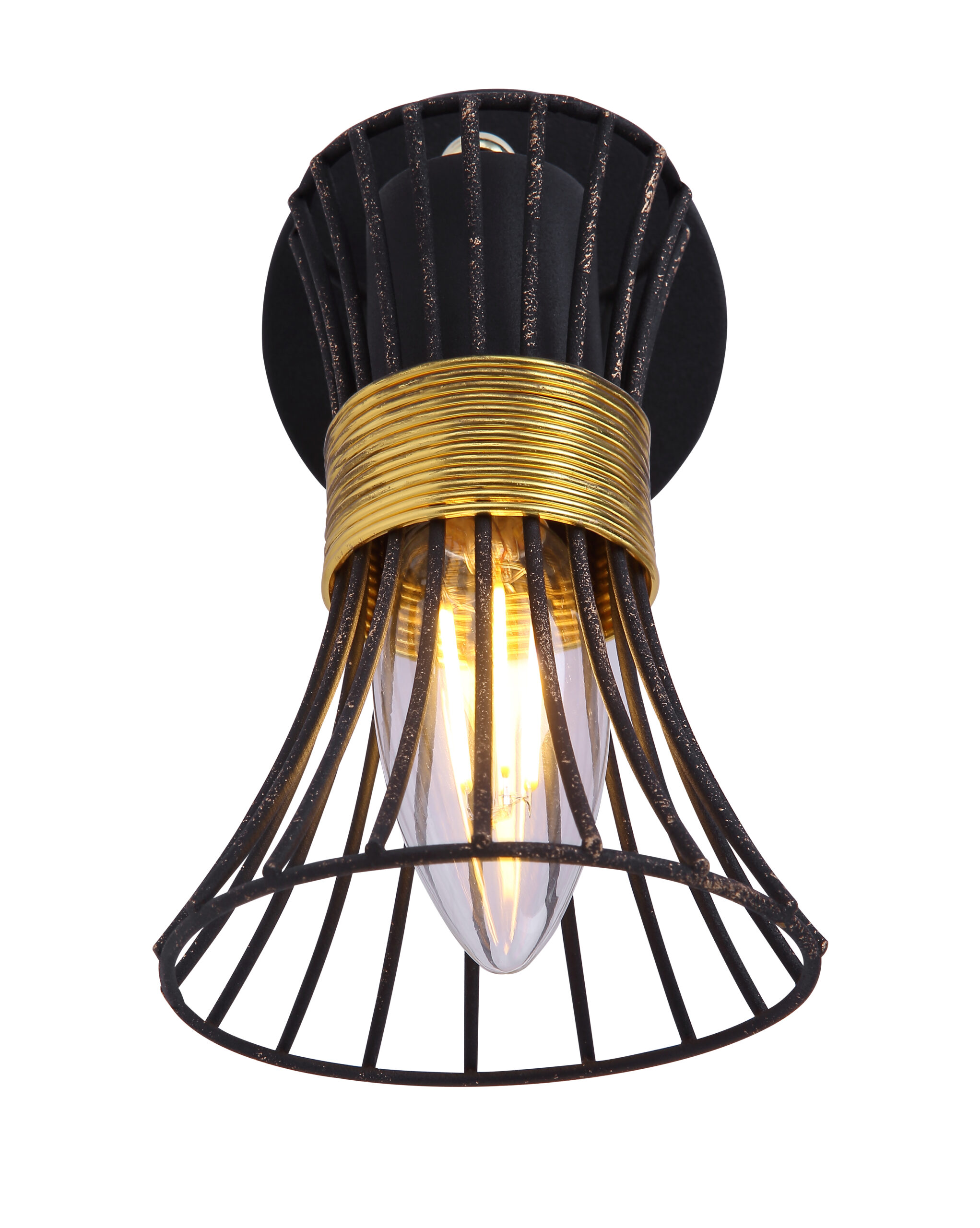 Zidna lampa iz porodice proizvoda PURRA uvjerava kombinacijom crnog i metala zlatne boje. Elegantan reflektor okružen je crnim rešetkama sa umotanim zlatnim nitima. Svetiljka je uključena i stvara ugodnu atmosferu. Navoj E14 omogućava slobodan izbor sijalice (maks. 40 vati). Zbog dugotrajnosti preporučujemo LED sijalice. Sa ostalim modelima ove serije možete dodatno uljepšati životni prostor.