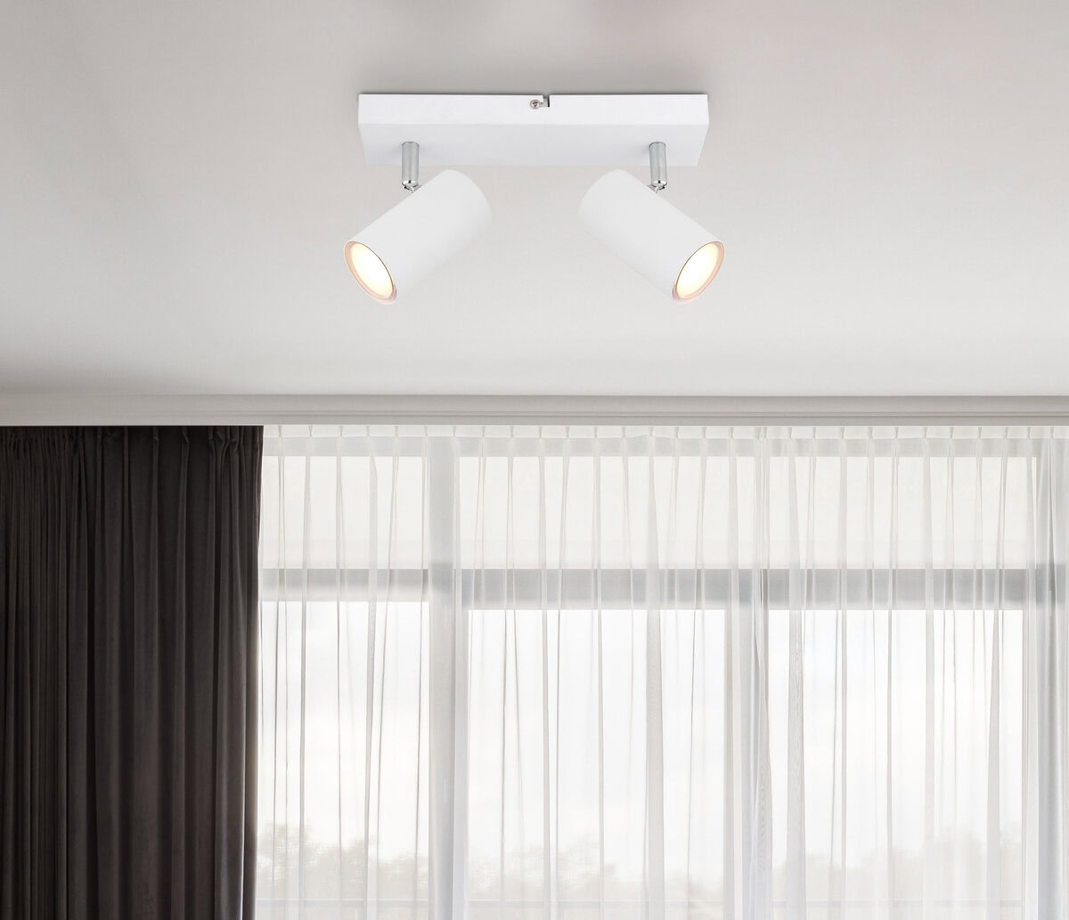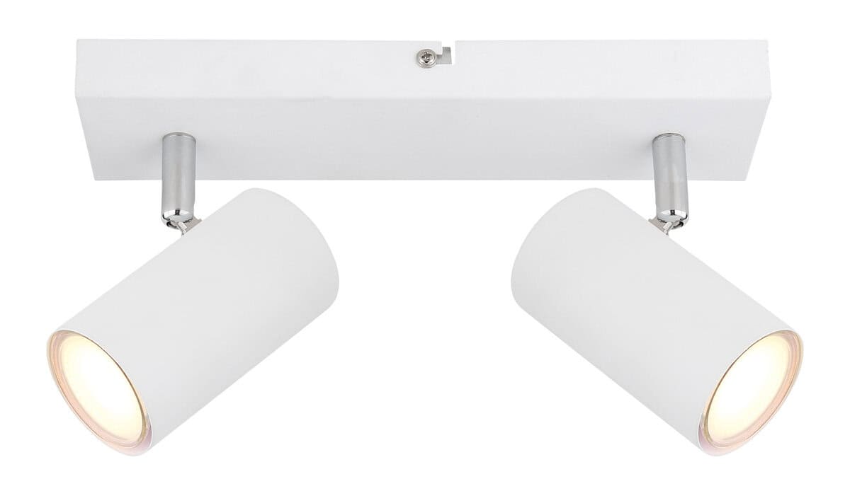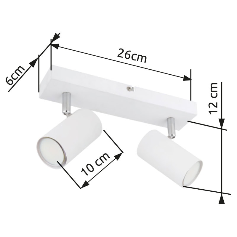 Ovaj jednostavan reflektor Robby serije inspiriše dizajnom i bojama. Na pravougaonom plafonskom nosaču (26x6cm) nalaze se dve GU10 utičnice, svaka pokrivena cilindričnom belom bojom. Grlo GU10, omogućava vam da slobodno birate sijalice, do maksimalne snage 35 vati.