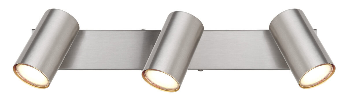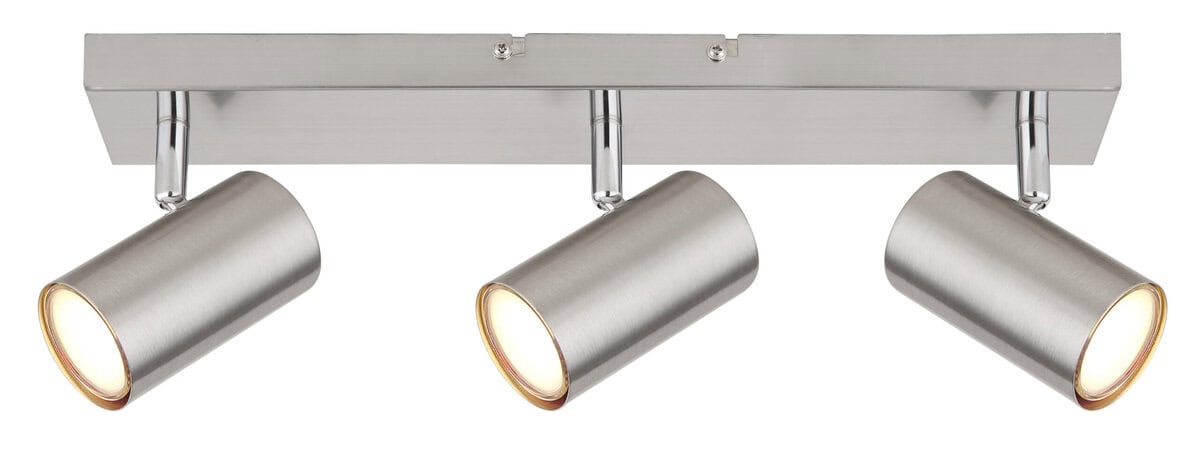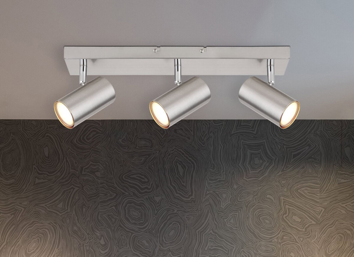 Ovaj jednostavan reflektor Robby serije inspiriše dizajnom i bojama. Na pravougaonom plafonskom nosaču (41x6cm) nalaze se tri GU10 utičnice, svaka pokrivena cilindričnim sjenilom od mat nikla. Grlo GU10, omogućava vam da slobodno birate sijalice, do maksimalne snage 35 vati.