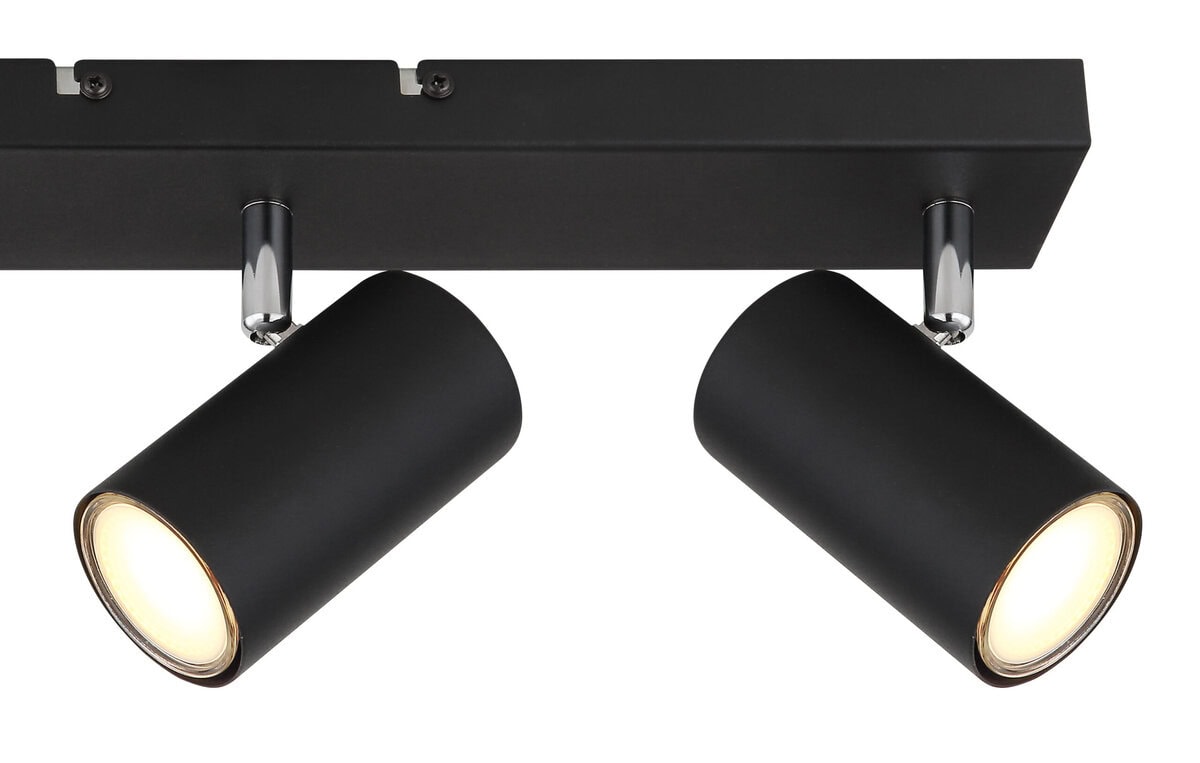 Ovaj jednostavan reflektor Robby serije inspiriše dizajnom i bojama. Na crnom pravougaonom plafonskom nosaču (41x6cm) nalaze se tri GU10 utičnice, svaka pokrivena cilindričnom crnom mat sjenilom. Grlo GU10, omogućava vam da slobodno birate sijalice, do maksimalne snage 35 vati.