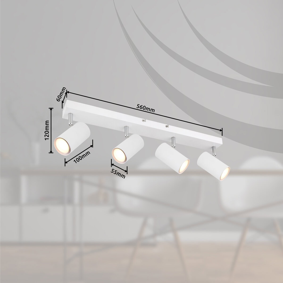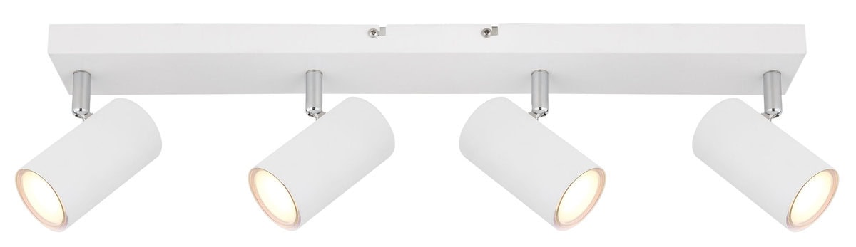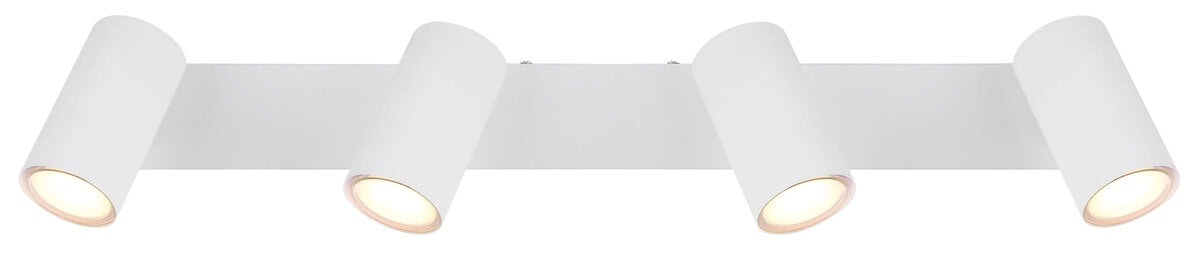 Ovaj jednostavan reflektor Robby serije inspiriše dizajnom i bojama. Na pravougaonom plafonskom nosaču (56x6cm) nalaze se četiri GU10 utičnice, svaka prekrivena cilindričnim sjenilom od mat nikla. Grlo GU10, omogućava vam da slobodno birate sijalice, do maksimalne snage 35 vati.