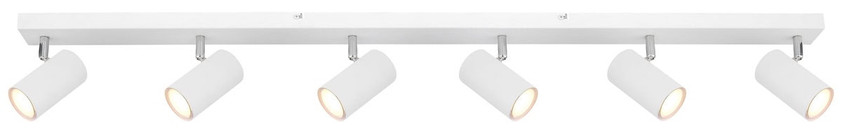 Ovaj jednostavni metalni stropni reflektor Robby serije impresionira svojim kontinuiranim bijelim hromiranim dizajnom. Reflektor dugačak skoro 1,2 m opremljen je sa šest okretnih GU10 utičnica. Slobodnim odabirom izvora svjetlosti možete sami odrediti boju i snagu svjetla, do maksimalne snage od 35 vati. Zbog uštede energije i dugovečnosti preporučujemo LED sijalice.
