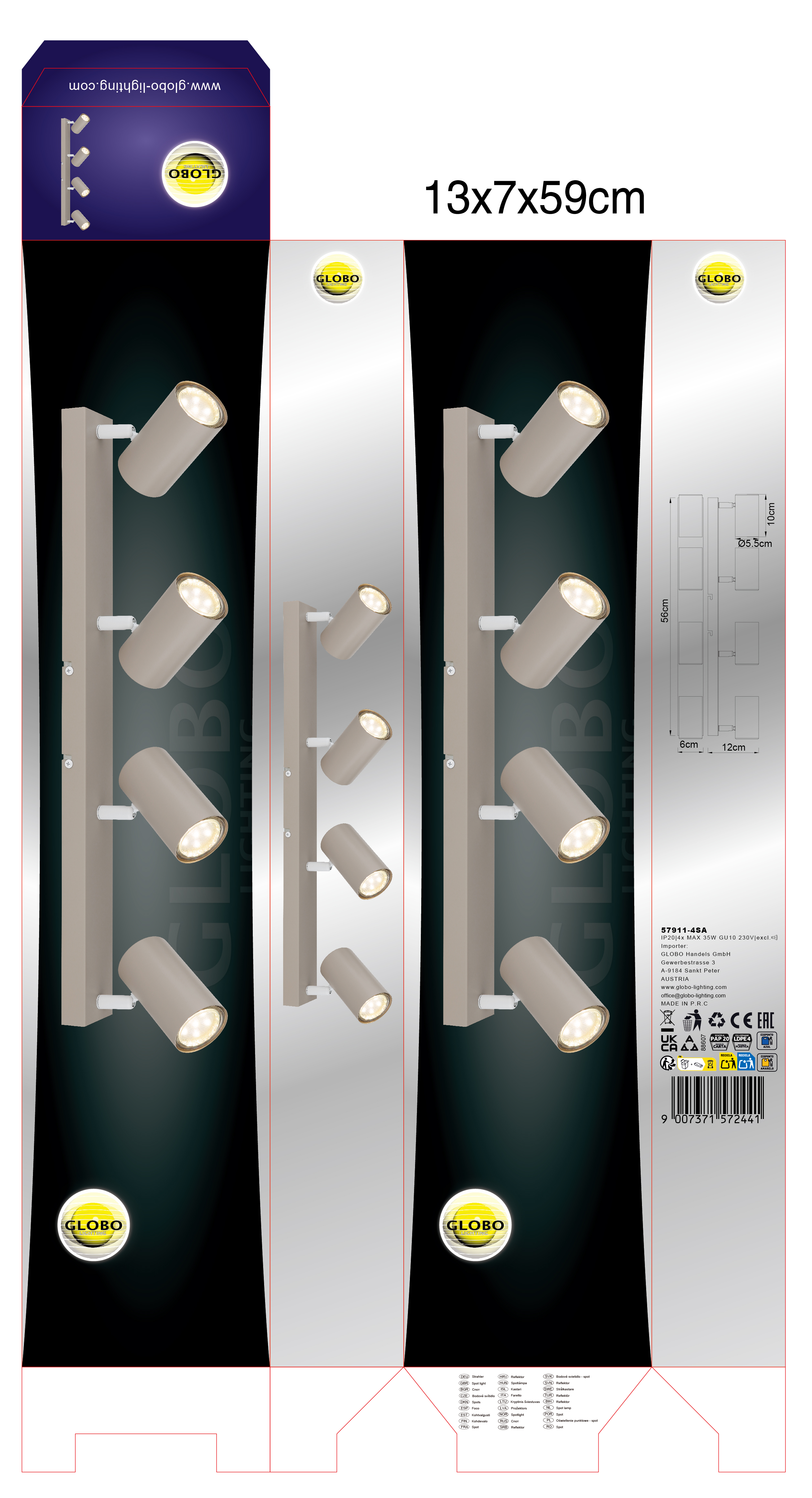 ROBBY reflektor impresionira modernim i čistim dizajnom u metalnoj završnici boje pijeska. Tanko kućište i odgovarajuća metalna nijansa u pijesku s bijelim unutarnjim premazom stvaraju moderan, ali nenametljiv izgled. Sa dužinom od 560 mm i širinom od 60 mm, ovaj reflektor savršen je za fokusirano osvjetljenje – bilo u hodniku, dnevnoj sobi ili radnom prostoru. Bijela unutrašnja površina sjenila osigurava ravnomjernu distribuciju svjetlosti i ugodan ambijent. Zahvaljujući grlu GU10 (sijalica nije uključena), možete odabrati izvor svjetlosti po svojoj želji. Izlaz lumena varira ovisno o korištenoj sijalici. ROBBY reflektor je idealno rješenje za sve koji cijene minimalistički dizajn, fleksibilnost i precizne svjetlosne akcente.