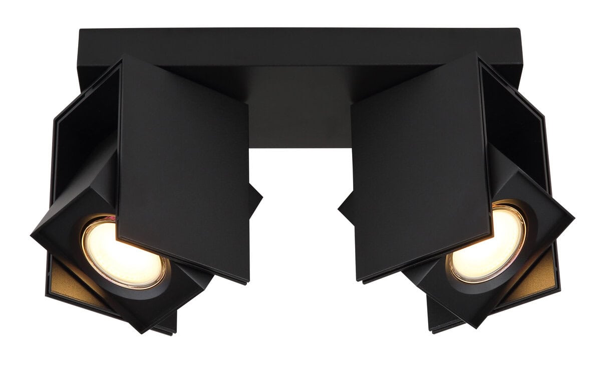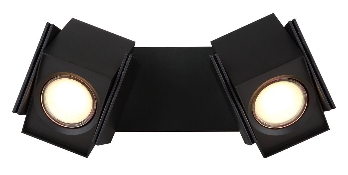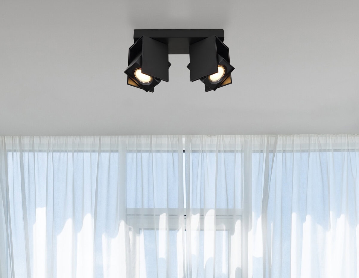 Ova moderna plafonska lampa serije RORY inspiriše stilskim dizajnom. U apstraktnom obliku, dva kućišta (26 x 8 cm) od crnog aluminijuma i metala formirana su na pravougaonom plafonskom nosaču. U svakom od dva pravougaonika nalazi se GU10 utičnica, koja vam omogućava da odredite boju svjetla i svjetlinu, do maksimalne snage od 5 vati.