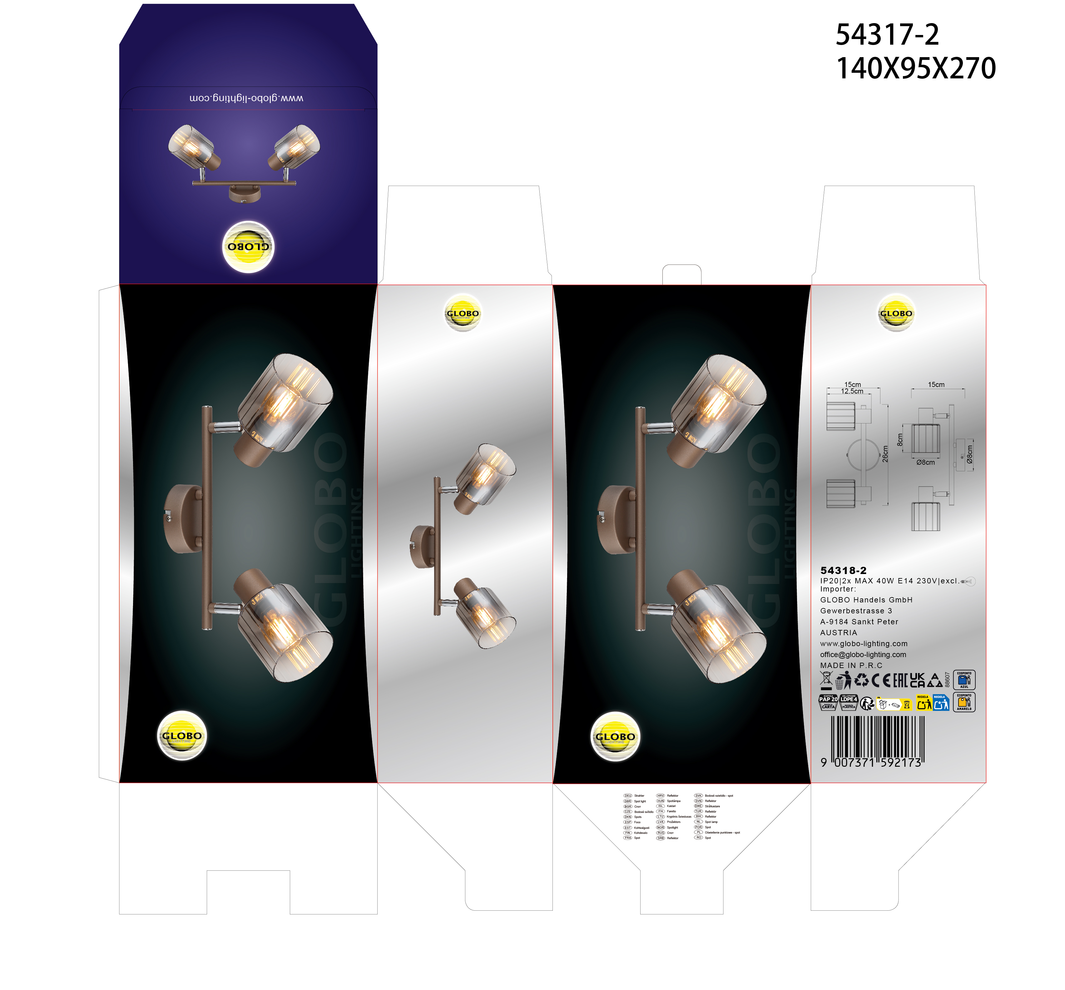 Spot rasvjeta STRAHLER METALL KAFFEEFARBEN, 2XE14