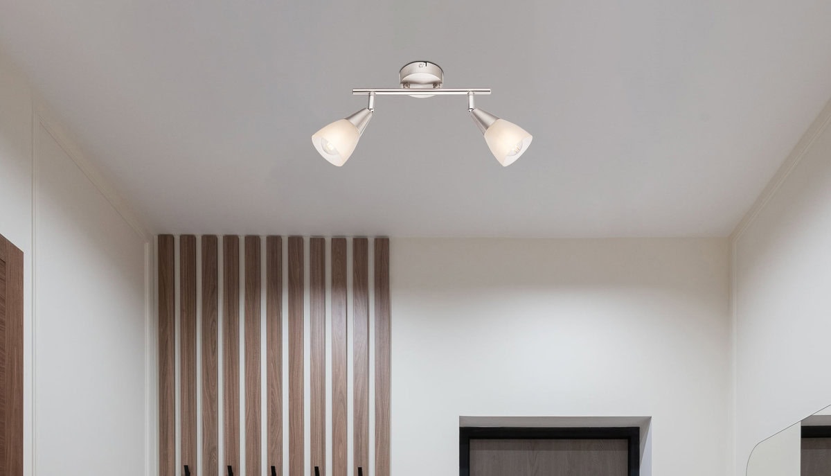 Moderni stropni reflektor Tadeus I ističe svojim dizajnom i odličnim materijalima. Dva podesiva mjesta napravljena od satiniranog stakla pričvršćena na ravnu čvrstu nikl mat ruku su opremljena sa E24 utičnicom. Tako možete slobodno odrediti pravi izvor svjetlosti (maks. 40W). Zbog njihove uštede energije i izdržljivosti preporučujemo LED lampe, a sa ostalim lampama iste serije modela možete upotpuniti sliku u svom dnevnom boravku.