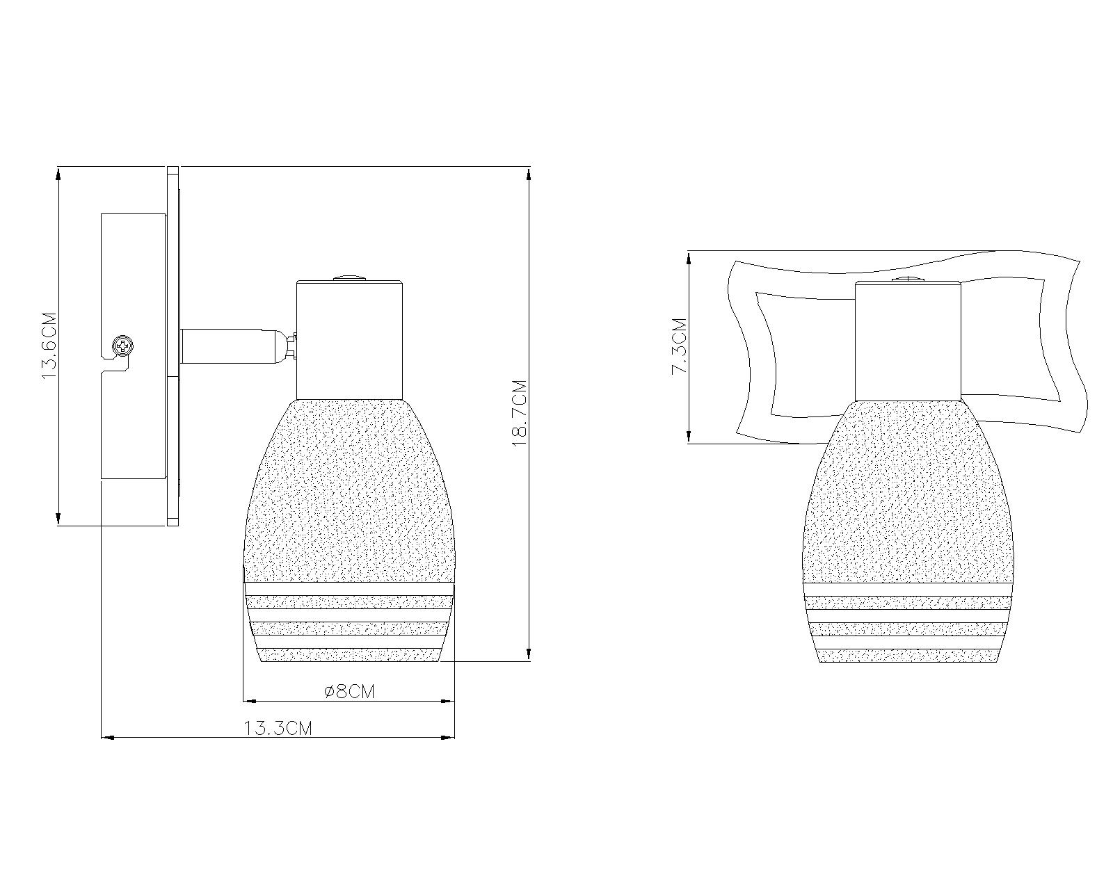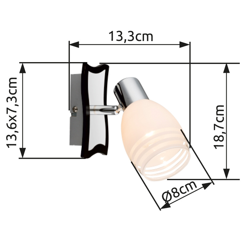 Svjetlo reflektora iz Toay porodice proizvoda uvjerava svojim jednostavnim, ali zanimljivim izgledom. Na hromiranoj ukrasnoj ploči nalazi se reflektor sa sjenilom od opal stakla koji se također može pomicati gore-dolje. Sa veličinom od 19 cm, ova lampa će sigurno naći svoje mjesto. Sa grlom E14 ostavljamo vam slobodu da odaberete odgovarajuću sijalicu (maks. 40W).