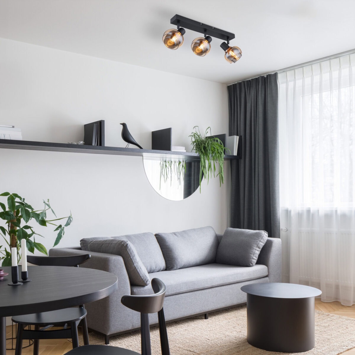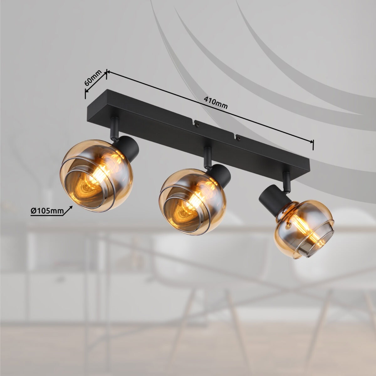 Otkrijte fascinantan reflektor sa 3xE14 utičnicama! Sa svojim mat crnim metalnim kućištem i jedinstvenim bojama stakla u ćilibaru i dimu, ovaj reflektor stvara posebnu atmosferu. Sa dimenzijama 410x105x135mm, savršeno se uklapa u bilo koji koncept prostorije. E14 utičnica vam omogućava da odredite boju svjetla i svjetlinu do maksimalne snage od 40 vati. Stvara prijatno osvetljenje i vešto postavlja scenu za vaše životne prostore.