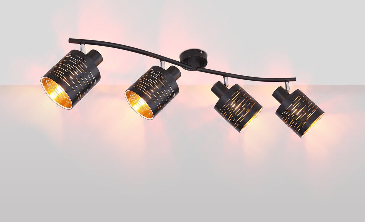 Uz ovu izuzetno modernu crnu plafonsku lampu, iz TUNNO serije, postavljeni su svetleći akcenti. Svestran, ovaj model može doprinijeti ugodnom okruženju svojim ukrasnim udarcima i zlatnom unutrašnjom bojom, okruglom sjenilom prekrivenom tekstilom. Sa dužinom od 72 cm, komad nakita će apsolutno privući oči u vaša četiri zida! Slobodnim odabirom izvora svjetlosti (4x E14/max. 15W) možete sami odrediti intenzitet svjetla i boju svjetla ove unutrašnje svjetiljke. Zbog dugotrajnosti preporučujemo LED sijalice. Ovaj proizvod se također može dobro upotpuniti sa drugim modelima iste serije.