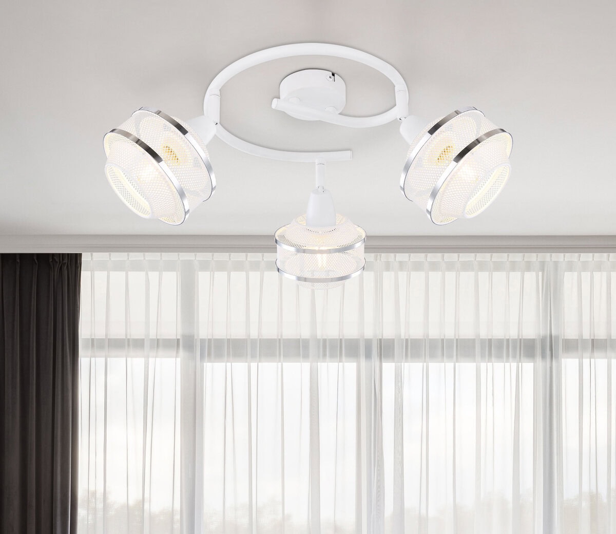 Reflektor serije VIGATTO (Ø25cm, H:21,5cm) impresionira svojim modernim izgledom. Sjenila su u bijeloj i 2 srebrna hromirana prstena, sastoje se od zakrivljene žičane mreže. Ugrađena E14 grla su dizajnirana do maksimalno 40W i omogućavaju zamjenu sijalica.