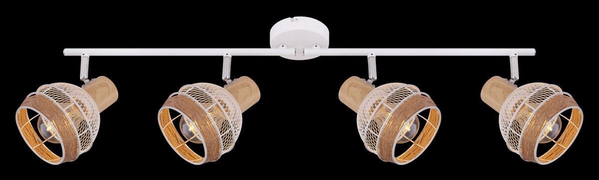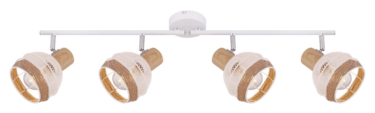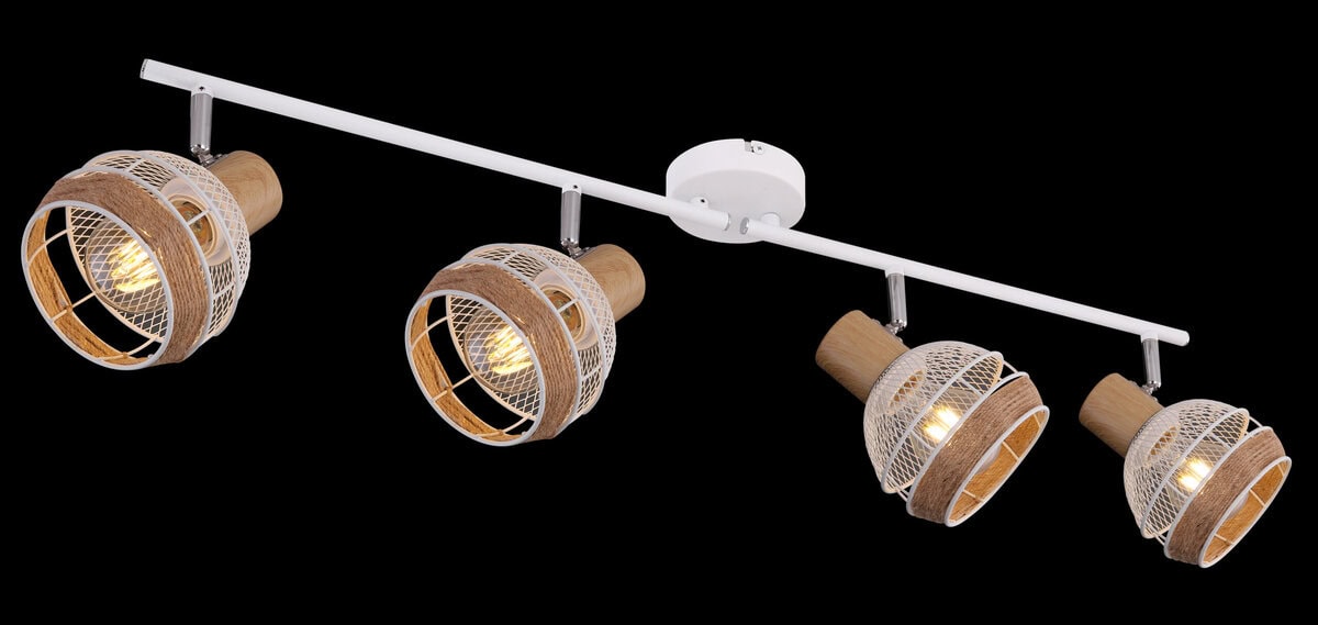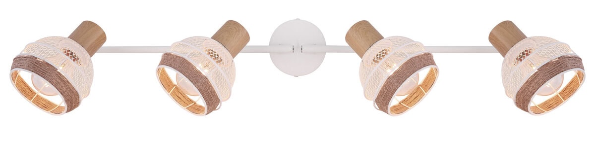 Ova zanimljiva serija WIDY kombinuje različite materijale – bijeli metal sa užetom od konoplje smeđe boje. Četiri reflektora smještena na dva kraka uvjeravaju dizajnom pokretnih abažura, koji su metalne pletenice i okruženi su užetom od crne konoplje sprijeda. Slobodnim odabirom izvora svjetlosti (4xE27/max. 40W) možete sami odrediti intenzitet svjetla i boju svjetla ove unutrašnje svjetiljke. Zbog dugotrajnosti i uštede energije preporučujemo LED sijalice. Ova reflektorska lampa je pogodna za spavanje, hodnik, dnevni boravak i trpezariju.