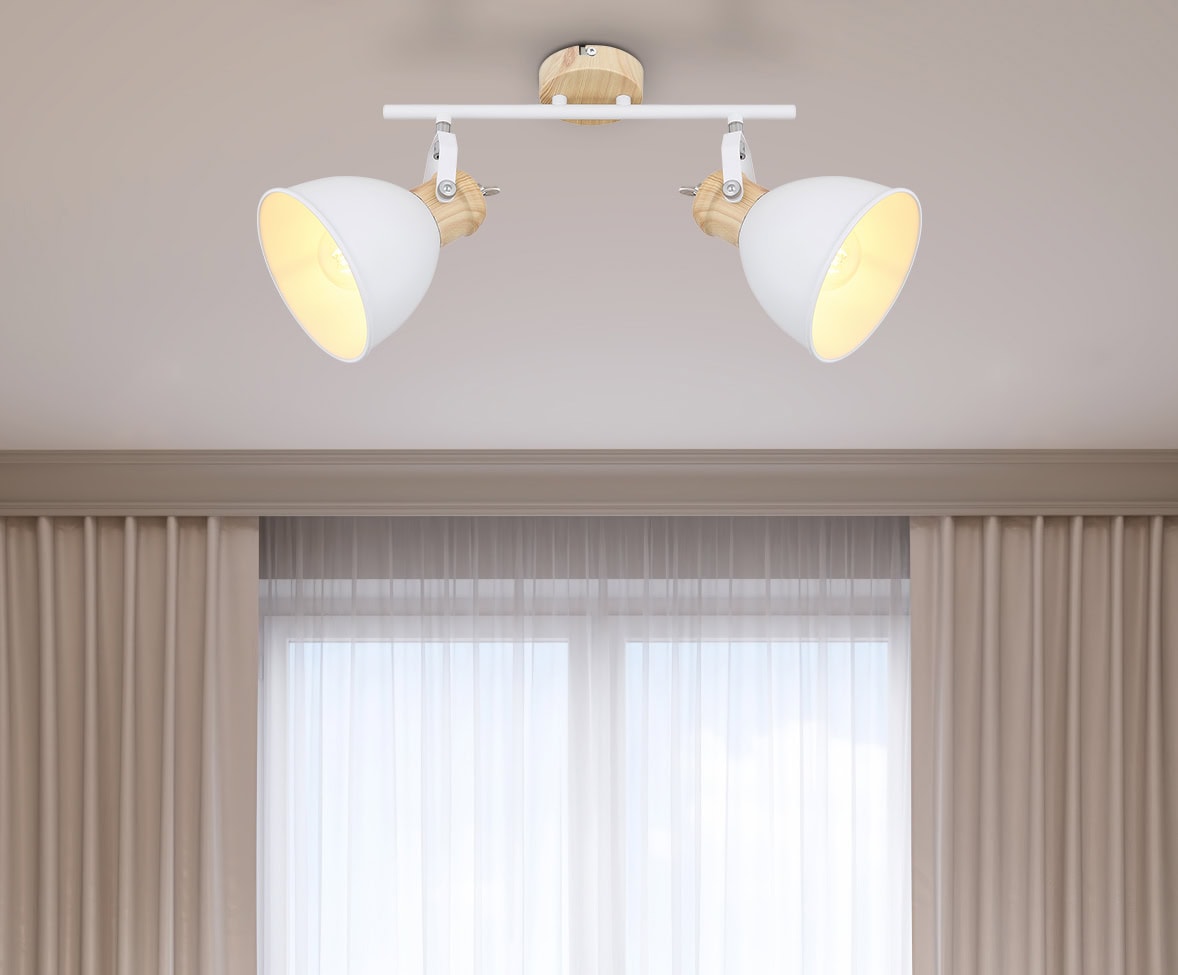 Ovaj SPOTLIGHT WIHO nadmašuje sve svojom čistom, neutralnom optikom. Bijeli metalni reflektor sa elementima u izgledu drveta ima dva abažura pričvršćena na šinu. Ova unutrašnja lampa je pogodna za spavaće sobe, dječje, hodnike i dnevne sobe. Ova svjetiljka ima dva grla E27, za koje se sijalice mogu slobodno birati. Zbog dugotrajnosti i uštede energije preporučujemo LED sijalice.