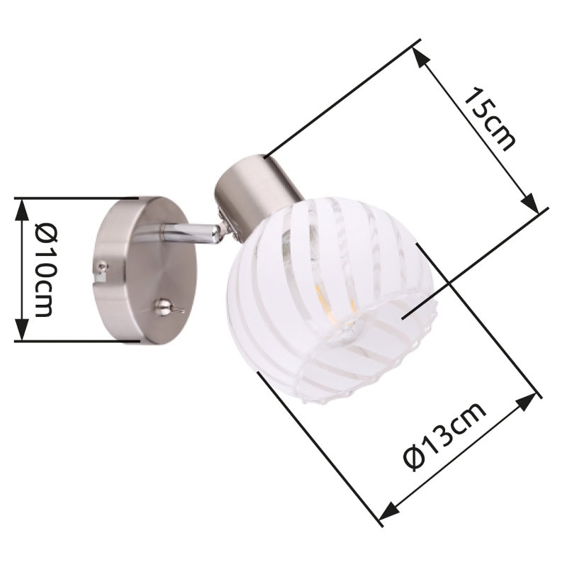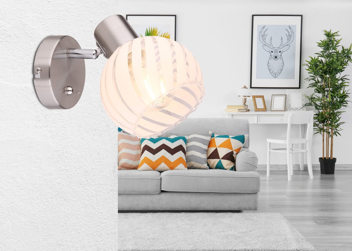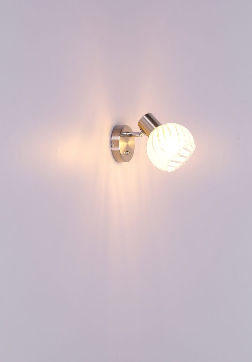 Zidni reflektor ove serije proizvoda WILLY uvjerava svojom kombinacijom dizajna i izrade. Kombinacija materijala nikl-mat metala i sfernog prozirno-bijelog stakla sa žljebovima i prugama pruža odličan izgled. Spot je opremljen E27 grlom, koji vam omogućava da sami odredite sijalicu (max.40W) kako biste se odlučili za intenzitet svjetlosti i boju svjetla. Štaviše, ova zidna lampa ima ugrađen prekidač za uključivanje/isključivanje. Sa drugim modelima iste serije proizvoda možete upotpuniti sliku u svojim sobama.