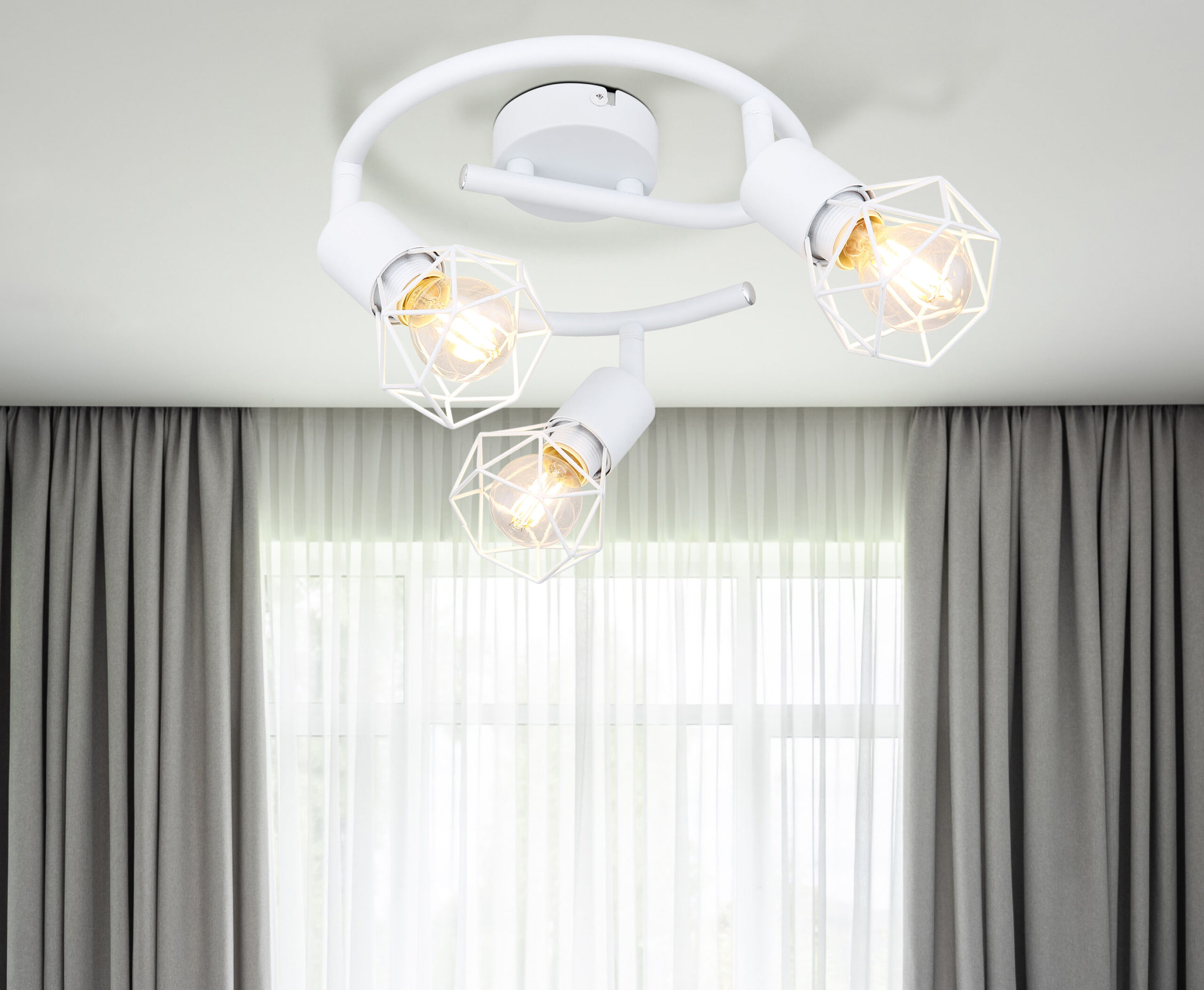 Xara I stropni reflektor uvjerava svojim elegantnim dizajnom. Tri pokretna bijela metalna kaveza u obliku dijamanta pričvršćena za ruku u obliku slova e trebala bi privući svačiju pažnju. Spotovi ovog reflektora su opremljeni sa E14 grlom, koji vam omogućava da odaberete pravu sijalicu za vas (maks. 40W) i na taj način odredite boju svjetla i intenzitet svjetla. Zbog uštede energije i dugovečnosti preporučujemo LED sijalice. Uz dodatne reflektore iz ove serije možete upotpuniti sliku u svoja četiri zida.