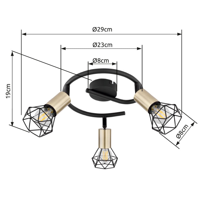 Ova plafonska lampa iz serije Xara I (ø 38 cm) impresionira svojim jednostavnim dizajnom od crnog metala i starog mesinga. Plafonska lampa od 21 cm ima tri E14 okvira uokvirena starim mesingom sa oblikovanim metalnim rešetkastim sjenilima pričvršćenim na zakrivljene metalne šipke. Zauzvrat, možete opremiti grlo odgovarajućim sijalicama po vašem izboru, što vam omogućava da odredite boju svjetla i svjetlinu prema vašim željama. Sa ostalim modelima Xara I serije možete upotpuniti cjelokupnu sliku u svom interijeru i pružiti moderan ambijent.