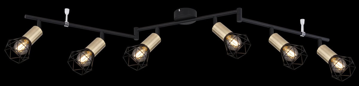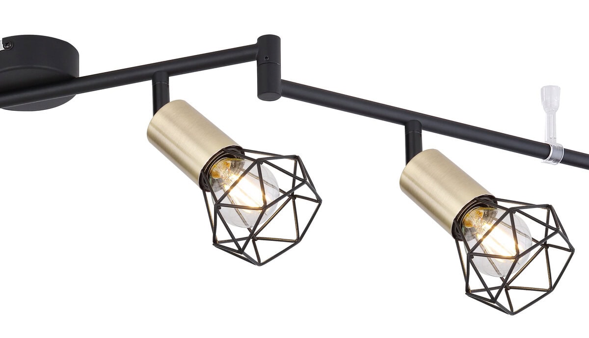 Ovaj stropni reflektor Xara I serije savršen je za vaš dnevni boravak. Reflektor dužine 116 cm sastoji se od tri crne metalne šipke, od kojih je svaka opremljena sa dva okretna, stara, mesingana uokvirena E14 utičnica sa metalnim rešetkastim sjenilima. Možete ih opremiti odgovarajućim sijalicama po vašem izboru, što vam daje mogućnost da prema vašim zamislima odredite boju svjetla i svjetlinu. Sa drugim modelima iste serije možete upotpuniti cjelokupnu sliku u svoja četiri zida i pružiti moderan ambijent.