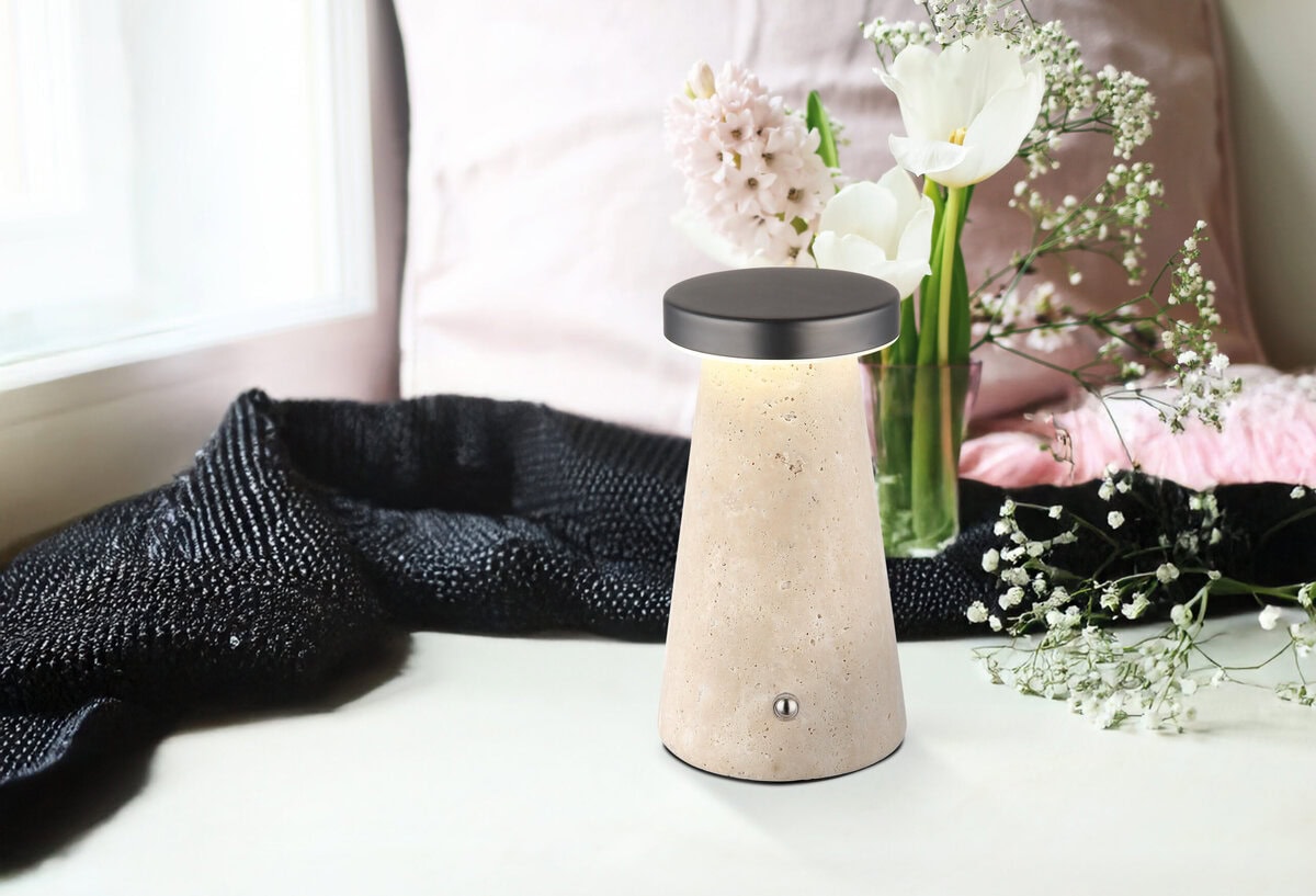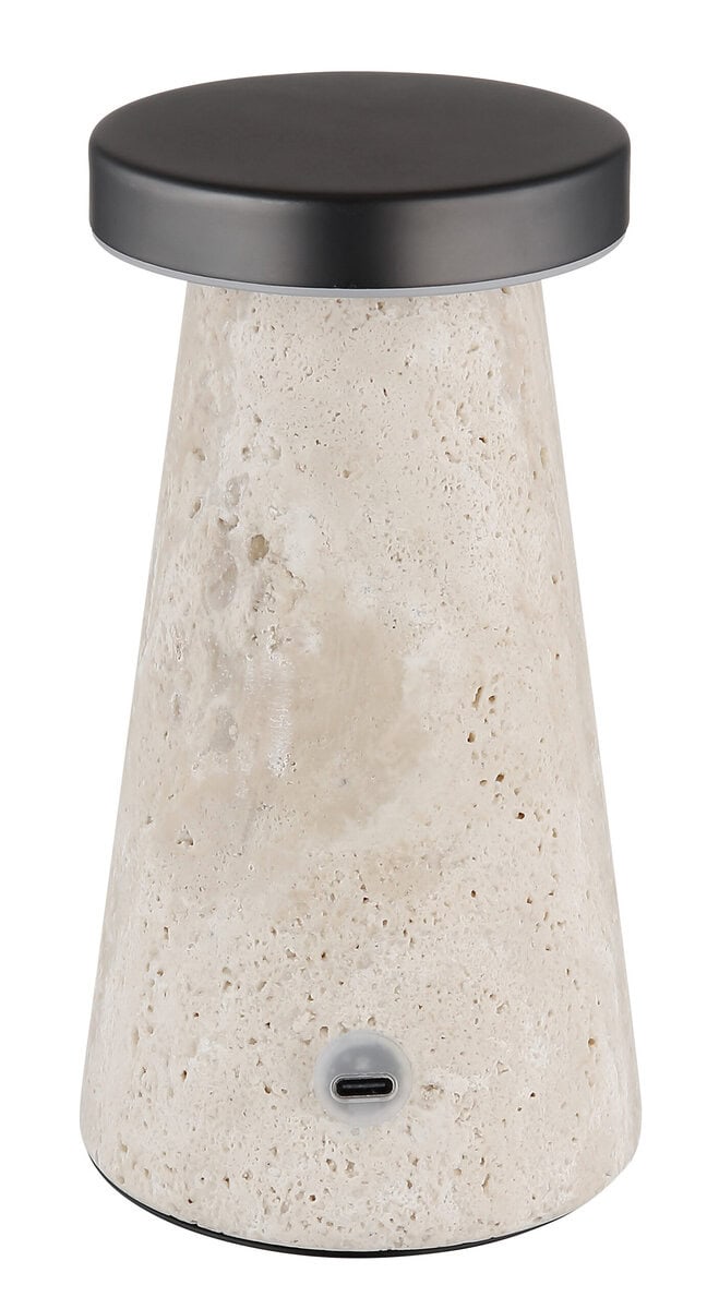 Stona lampa Travertin Stone Grey kombinuje elegantan dizajn sa praktičnom funkcionalnošću. Kućište od sivog travertina i crno-hrom metalna nijansa dodaju stilski naglasak svakoj prostoriji. Opalno plastično sjenilo pruža meko, ugodno svjetlo. Uz beskonačni dimer na dodir, svjetlina se može individualno podesiti, dok se boje mogu fiksirati, a memorijska funkcija čuva vaše željene postavke. Svjetlo nudi svjetlosni učinak od 138 lumena i CCT funkciju od 2700K do 4500K tako da uvijek možete stvoriti savršeno svjetlosno raspoloženje. Također svijetli tokom punjenja i potrebno je otprilike 4 sata da se potpuno napuni. Vrijeme osvjetljenja je približno 6 sati. Uključujući USB kabl za punjenje i adapter, odmah je spreman za upotrebu. Kontrola za uključivanje/isključivanje na dodir osigurava praktično rukovanje. Ova stolna lampa nije samo privlačna, već je i praktično i moderno rješenje za rasvjetu.