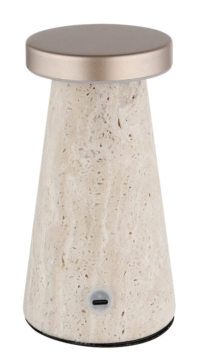 Stona lampa Travertin Stone Grey fokusira se na elegantan dizajn i funkcionalnost. Njegovo tijelo izrađeno od sivog travertina i mat metalni sjenilo u boji kapućina daju lampi bezvremensku eleganciju. Opalno plastično sjenilo osigurava nježnu, ugodnu distribuciju svjetlosti. Uz beskonačni dimer na dodir, svjetlina se može individualno podesiti, a boje se mogu fiksirati po želji. Praktična memorijska funkcija čuva vaše željene postavke i na taj način osigurava maksimalnu udobnost. Lampa nudi svjetlosnu snagu od 138 lumena i omogućava kontinuirano podešavanje temperature boje (CCT) od 2700 K do 4500 K kako bi se uvijek stvorilo pravo svjetlosno raspoloženje. Također svijetli tokom punjenja i potrebno mu je otprilike 4 sata da se potpuno napuni, uz trajanje osvjetljenja od približno 6 sati. Uključujući USB kabl za punjenje i adapter, lampa je spremna za trenutnu upotrebu. Kontrola za uključivanje/isključivanje dodirom čini rad posebno praktičnim. Uključuje LED – idealno za moderne sobe.