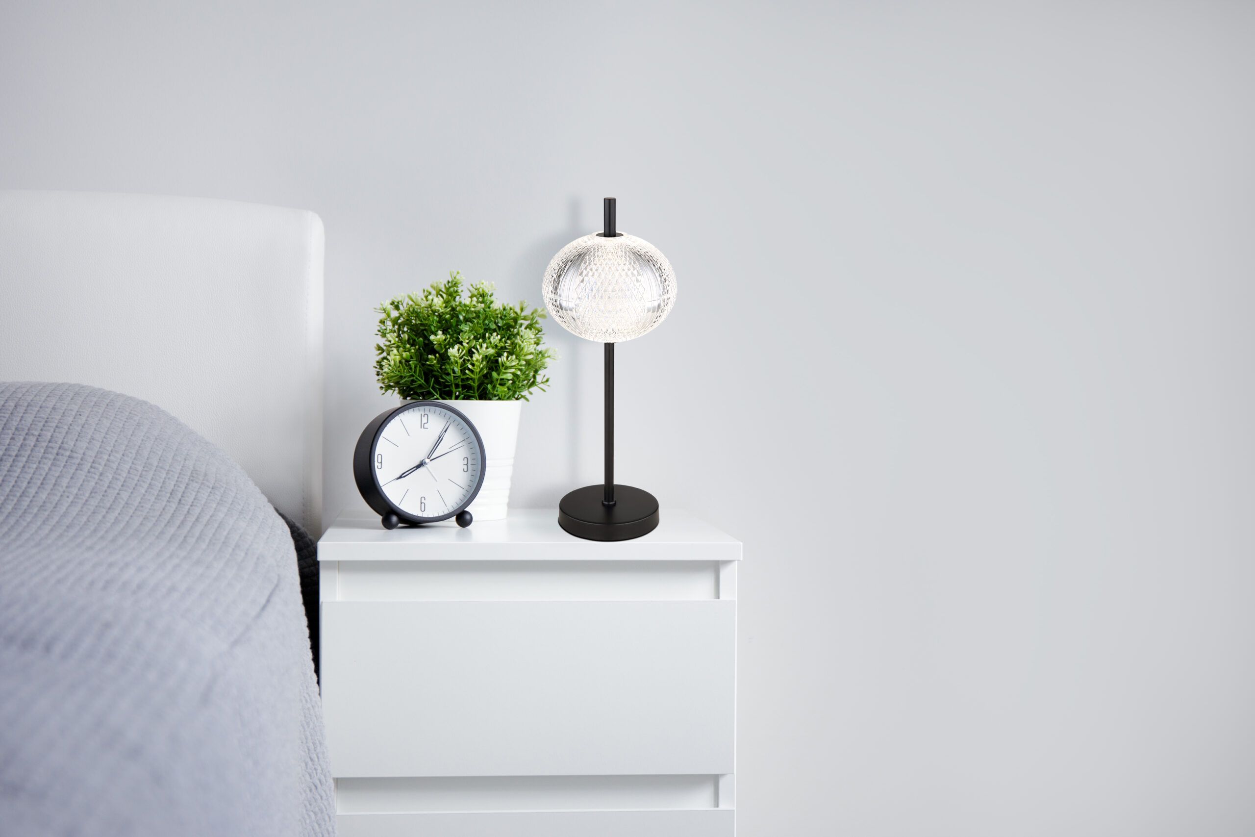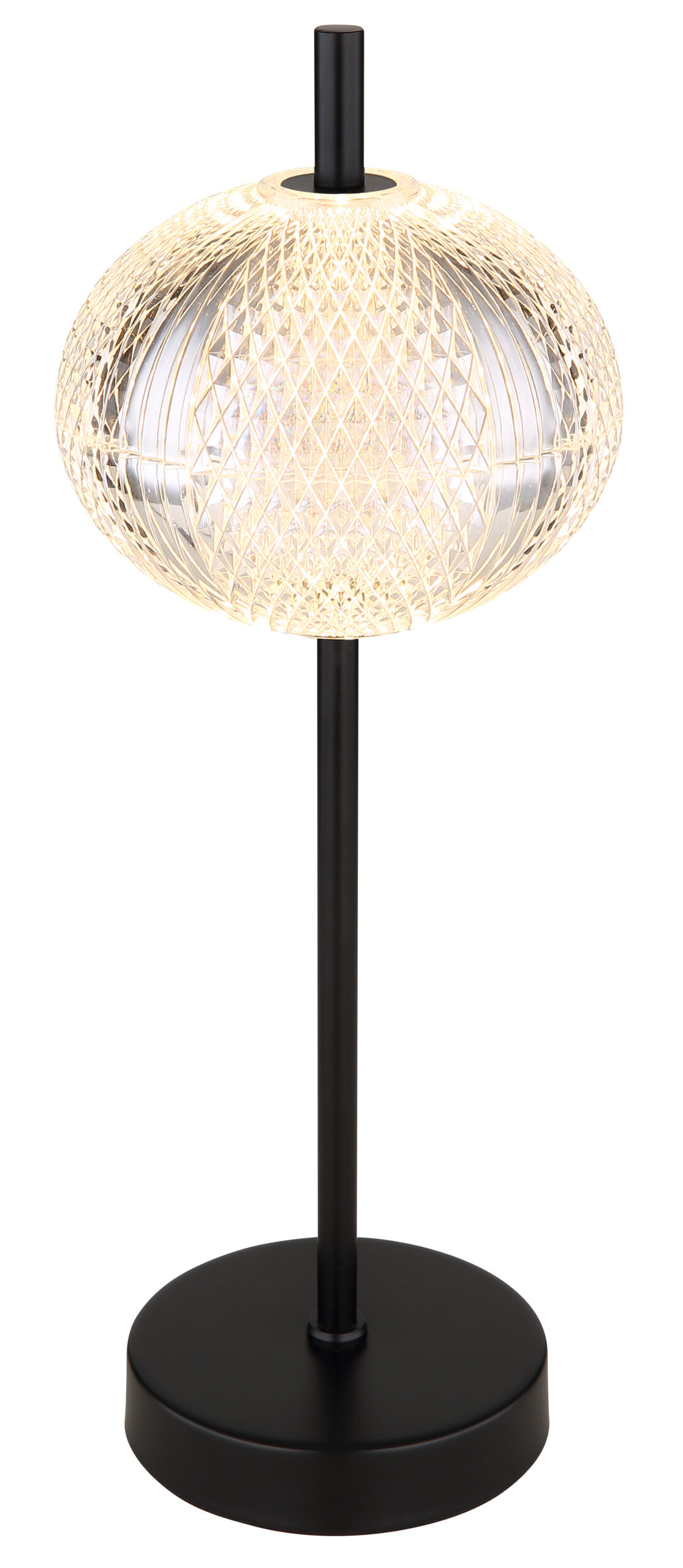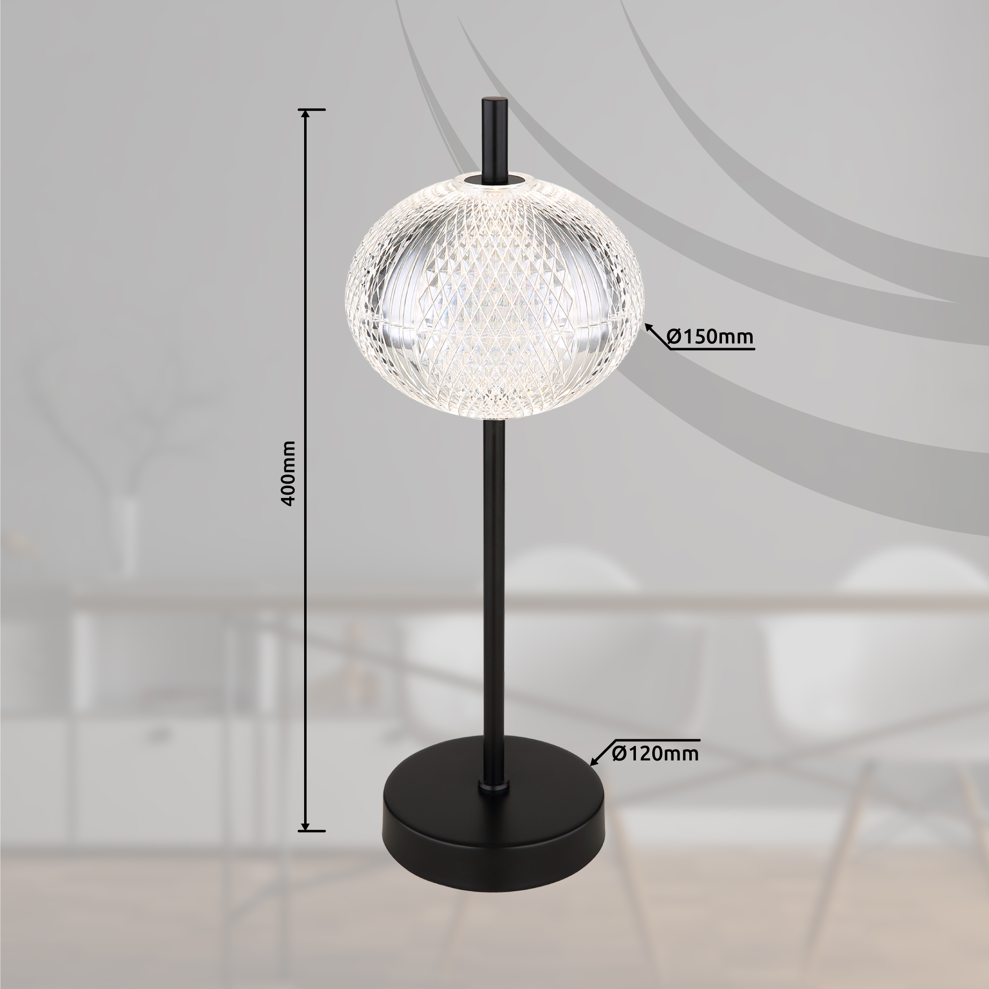 Elegantna stona lampa koja će dati toplu atmosferu vašoj sobi. Lampa je izrađena od crnog mat metala i prozirnog akrila koji emituje meku svjetlost. Sa prečnikom od 150 mm i visinom od 400 mm, ova stona lampa je prava privlačna za oči na svakom stolu. Kabl je crne boje i dužine 1500 mm. Prekidač pritiska i beskonačni menjači slavina omogućavaju lak rad. Boje se mogu fiksirati, a memorijska funkcija osigurava čuvanje vaših postavki. Napominjemo da se svetiljka isporučuje isključivo 1x LED 7W 230V, koja ima intenzitet svjetlosti od 700lm izvora i temperaturu boje 3000/4500/6000K.