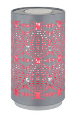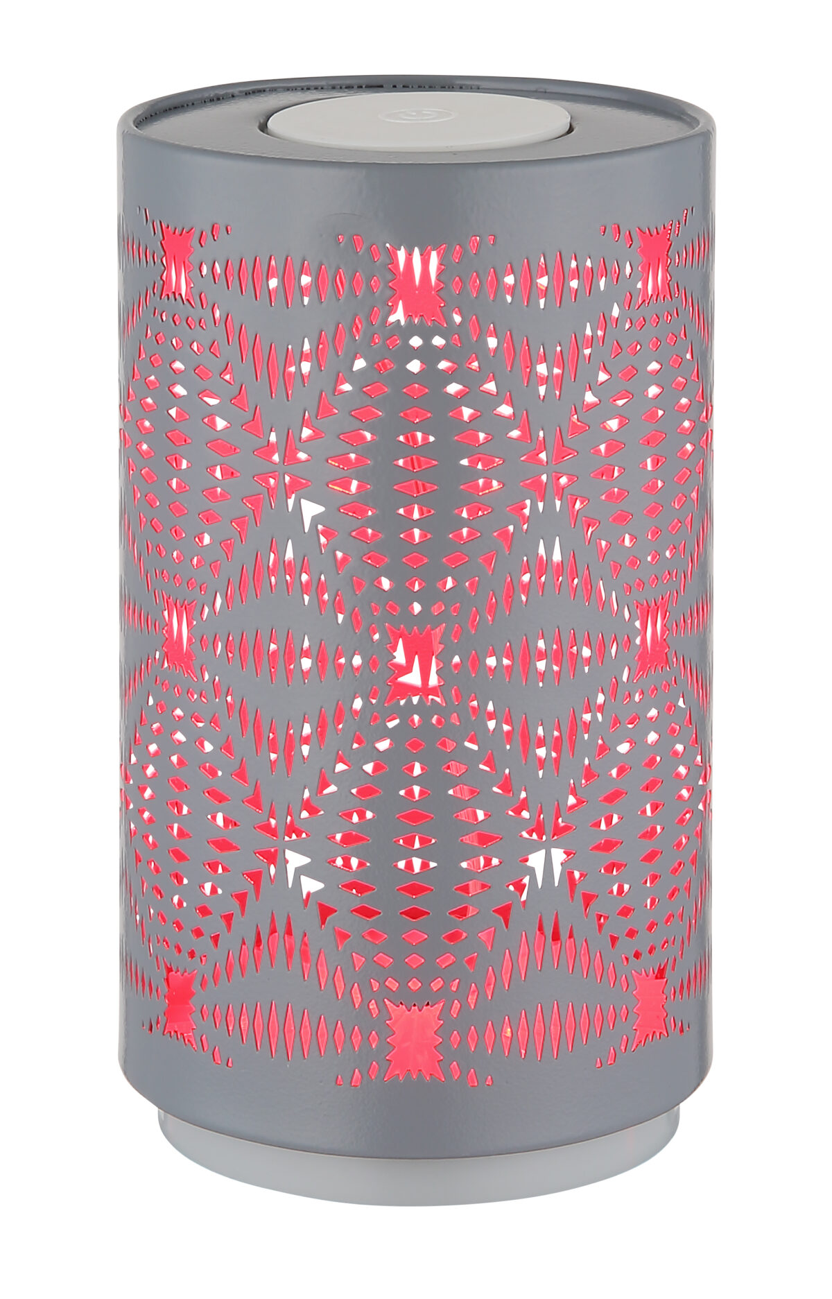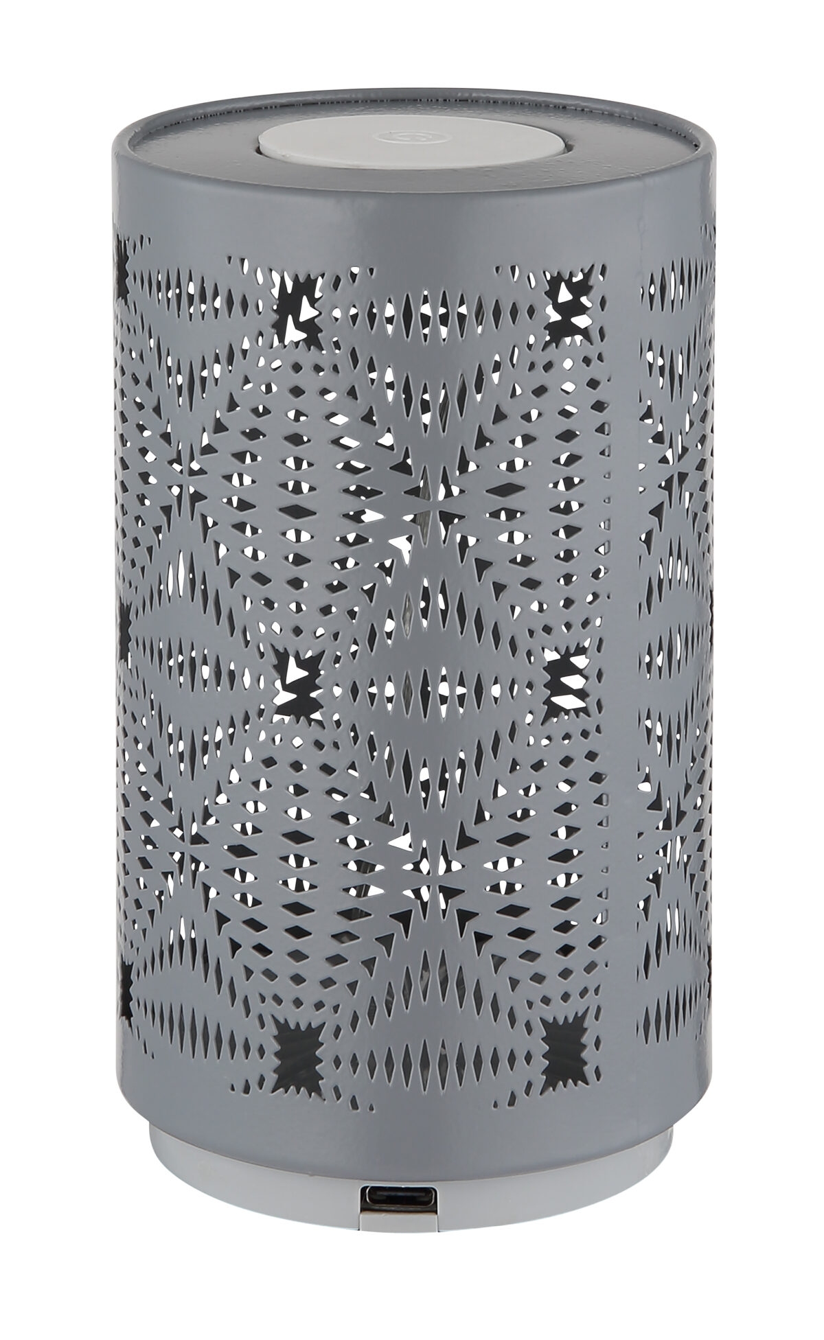 Otkrijte elegantnu stonu lampu AMIYAH koja je savršena za moderne životne prostore. Sa svojim okruglim, cilindričnim dizajnom, unosi eleganciju i funkcionalnost u svako okruženje. Tijelo lampe je izrađeno od visokokvalitetne, mat bijele plastike i pruža suvremeni izgled. Siva metalna nijansa ima umjetničke ukrasne izreze koji stvaraju atmosfersku igru svjetla i postavljaju privlačne akcente. Sa prečnikom od 80 mm, AMIYAH je idealan za stolove, noćne ormariće ili kao dekorativni element u vašem životnom prostoru. Inovativna RGB funkcija za promjenu boje omogućava vam da prilagodite, pa čak i popravite boju svjetla po svom ukusu kako biste stvorili vrlo ličnu atmosferu. Rukovanje je vrlo jednostavno putem praktičnog prekidača za uključivanje/isključivanje. Adapter i USB kabl za punjenje su uključeni u isporuku, tako da punjenje nije komplikovano. Nakon samo 2 sata punjenja, AMIYAH nudi vrijeme gorenja do 6 sati sa svjetlosnom snagom od 15 lumena. Posebno praktično: nastavlja da svijetli čak i tokom punjenja. Unesite modernu eleganciju i atmosferske boje u svoj dom uz AMIYAH stonu lampu!