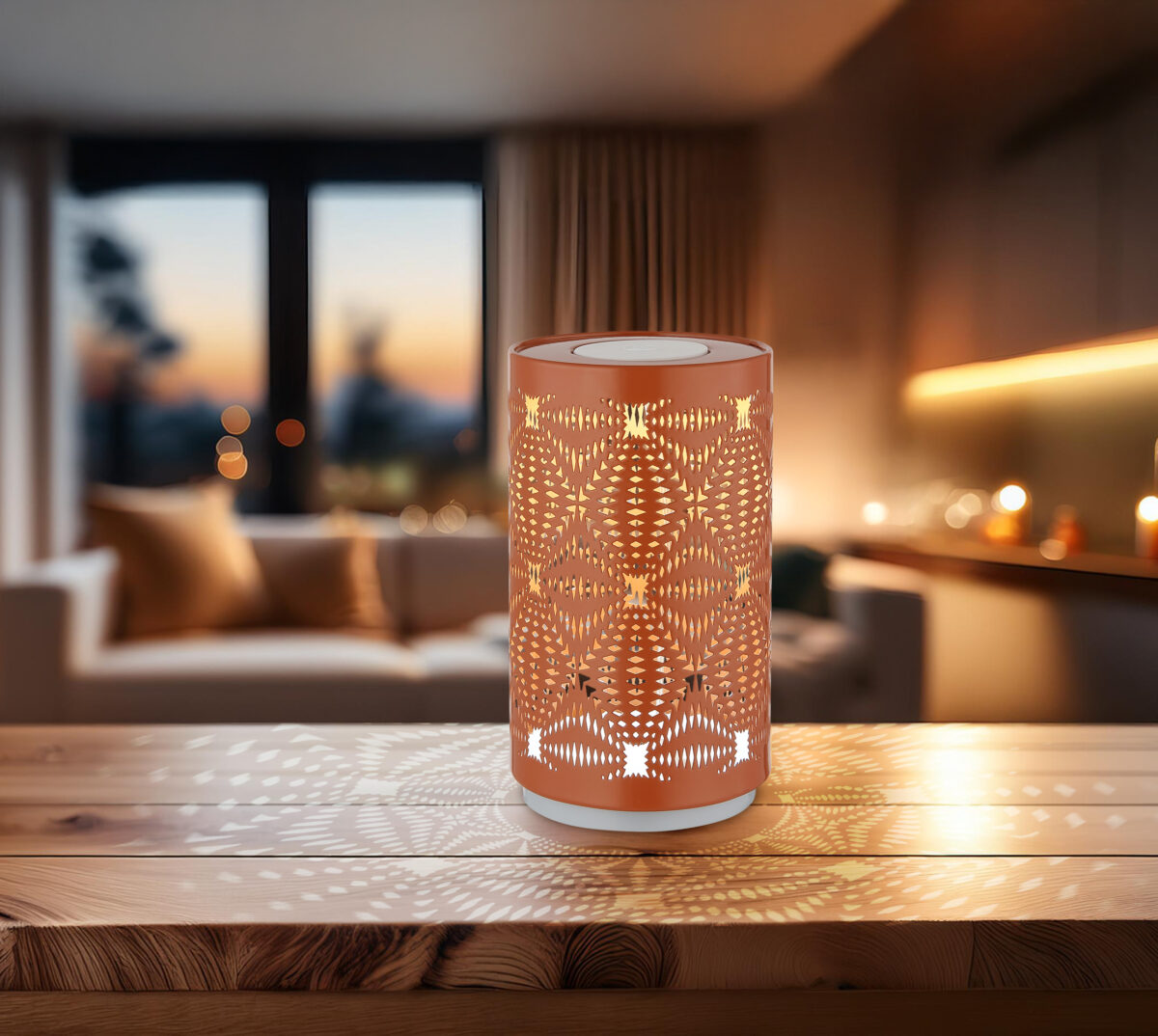 Otkrijte elegantnu stonu lampu AMIYAH koja savršeno upotpunjuje moderno životno okruženje. Sa svojim okruglim, cilindričnim dizajnom, ova lampa nije samo funkcionalna, već i prava privlačna za oči. Mat bijelo plastično kućište daje lampi suvremeni izgled, dok metalni sjenilo zlatne boje s umjetničkim ukrasnim izrezima baca magičnu igru svjetla na vaše zidove. Sa prečnikom od 80 mm, AMIYAH je idealan za stolove, noćne ormariće ili kao moderan dekorativni element. Inovativna RGB funkcija za promjenu boje omogućava vam da prilagodite, pa čak i popravite boju svjetla po svom ukusu kako biste stvorili prilagođenu atmosferu. Rukovanje je vrlo jednostavno putem praktičnog prekidača za uključivanje/isključivanje. Adapter i USB kabl za punjenje su uključeni u kutiju, tako da punjenje nije naporno. Nakon samo 2 sata punjenja, AMIYAH nudi vrijeme gorenja do 6 sati sa svjetlosnom snagom od 15 lumena. Posebno praktično: lampa ostaje upaljena čak i tokom punjenja. Unesite stil i udobnost u svoj dom uz AMIYAH stonu lampu!