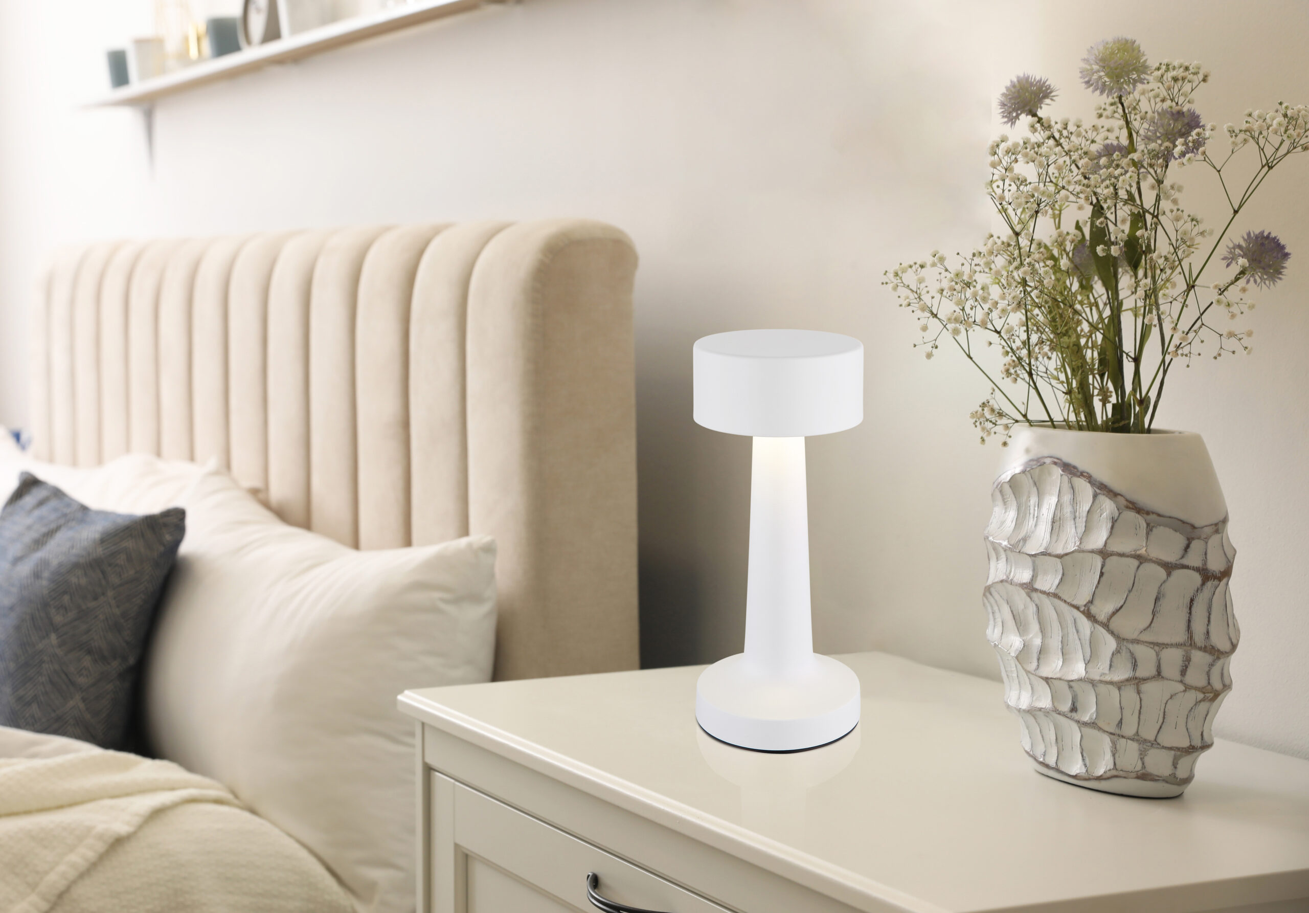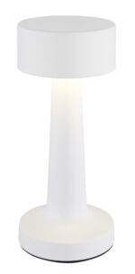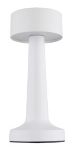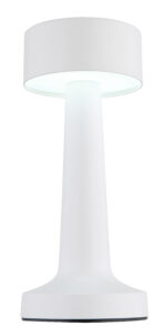 Stolna lampa ANGELIKA u mat beloj boji kombinuje moderan dizajn sa praktičnom funkcionalnošću. Opalni abažur od plastike osigurava ugodnu distribuciju svjetlosti u prostoriji. Sa dugmetom i sistemom za uključivanje/isključivanje na dodir, svetiljka je jednostavna za rukovanje. Beskonačno varijabilni dimer na dodir omogućava individualno podešavanje svjetline, a boje se mogu fiksirati. Stolna lampa se napaja ugrađenom baterijom (CR18650 800mAh 5V), koja se može napuniti za samo 4 sata i omogućava vrijeme gorenja do 6 sati. Osim toga, svjetlo se još uvijek može koristiti tokom procesa punjenja. Sa LED snagom od 1,2W i izlaznom snagom od 65lm, svjetiljka nudi ugodno svjetlo u 3 podesive opcije od 2700/6500/4000K. USB kabl je uključen, adapter se mora kupiti posebno.