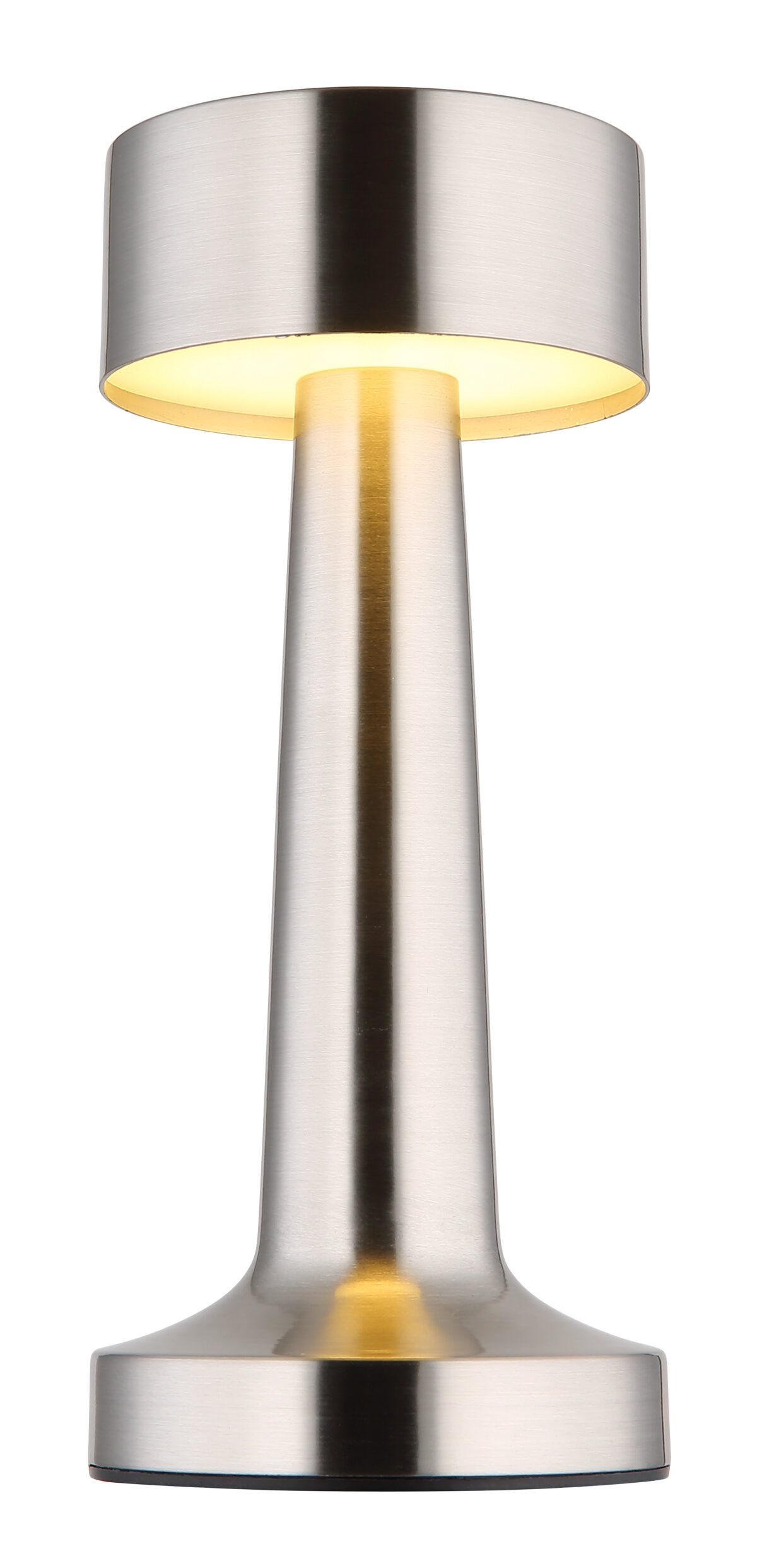 Stolna lampa ANGELIKA od mat nikla ne samo da privlači poglede, već je i izuzetno funkcionalna. Opalni abažur od plastike osigurava ugodnu distribuciju svjetlosti u prostoriji. Zahvaljujući praktičnom dugmetu i sistemu za uključivanje/isključivanje na dodir, rukovanje svetiljkom je dečija igra. Beskonačno promjenjivi zatamnjivač na dodir omogućava vam da prilagodite svjetlinu po potrebi, dok se boje mogu fiksirati. Stolna lampa se napaja baterijom (CR18650 800mAh 5V) koja se može napuniti za samo 4 sata i garantuje vrijeme gorenja do 6 sati. Posebno praktična je mogućnost upravljanja svjetiljkom tokom punjenja. LED sa snagom od 1,2W i izlaznom snagom od 65lm nudi 3 podesive opcije svjetla od 2700/6500/4000K. USB kabl je uključen, ali adapter nije.