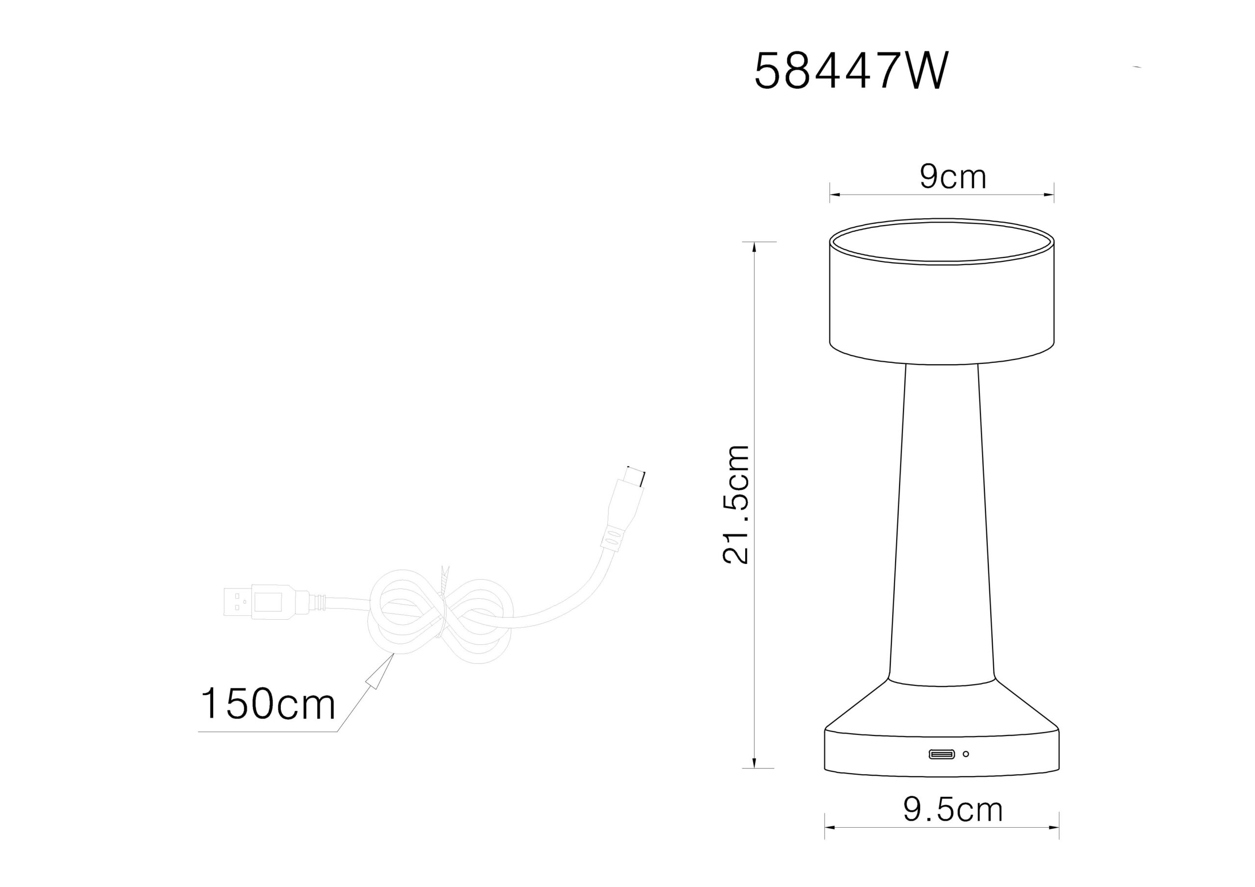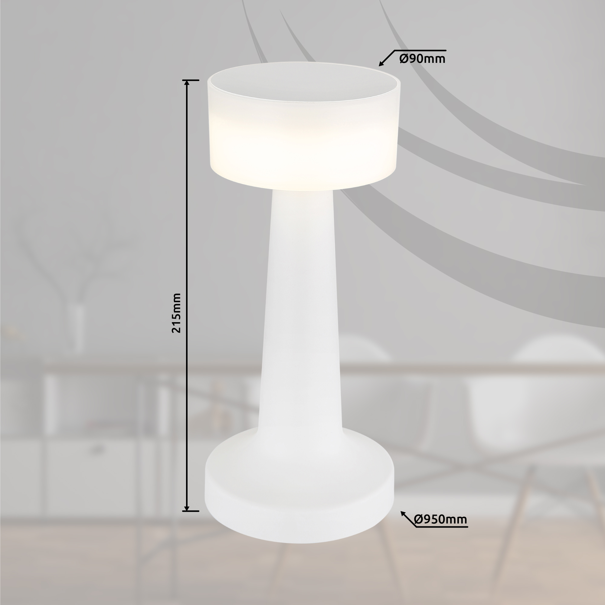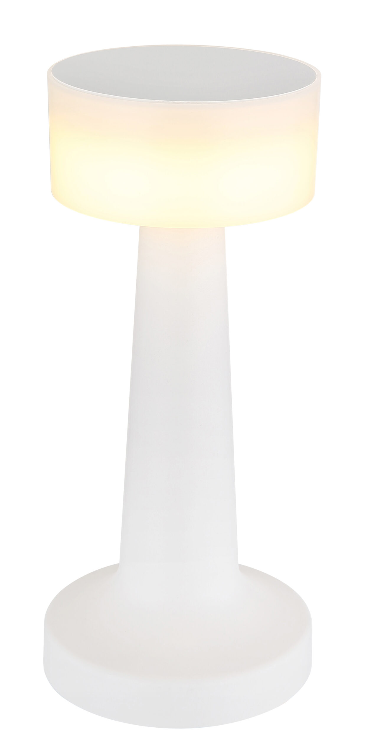 Stolna lampa ANGELIKA izrađena je od mat, bijele plastike i ima opal abažur. Kabl je izrađen od PVC-a u bijeloj boji, a presostat omogućava lako uključivanje i isključivanje. Lampa se može prigušiti i ima beskonačni dimer na dodir pomoću kojeg se svjetlina može individualno podesiti. Boje se mogu popraviti, a lampa se može puniti preko priloženog USB kabla. Uključena je i baterija (CR18650 800mAh 3.7V), sa vremenom gorenja od 4-6 sati i vremenom punjenja od oko 2 sata. Svetiljka ima LED sa 1W i izlaznom snagom od 55lm i 3 podesive opcije svjetla (2700/6500/4000K). Adapter nije uključen.