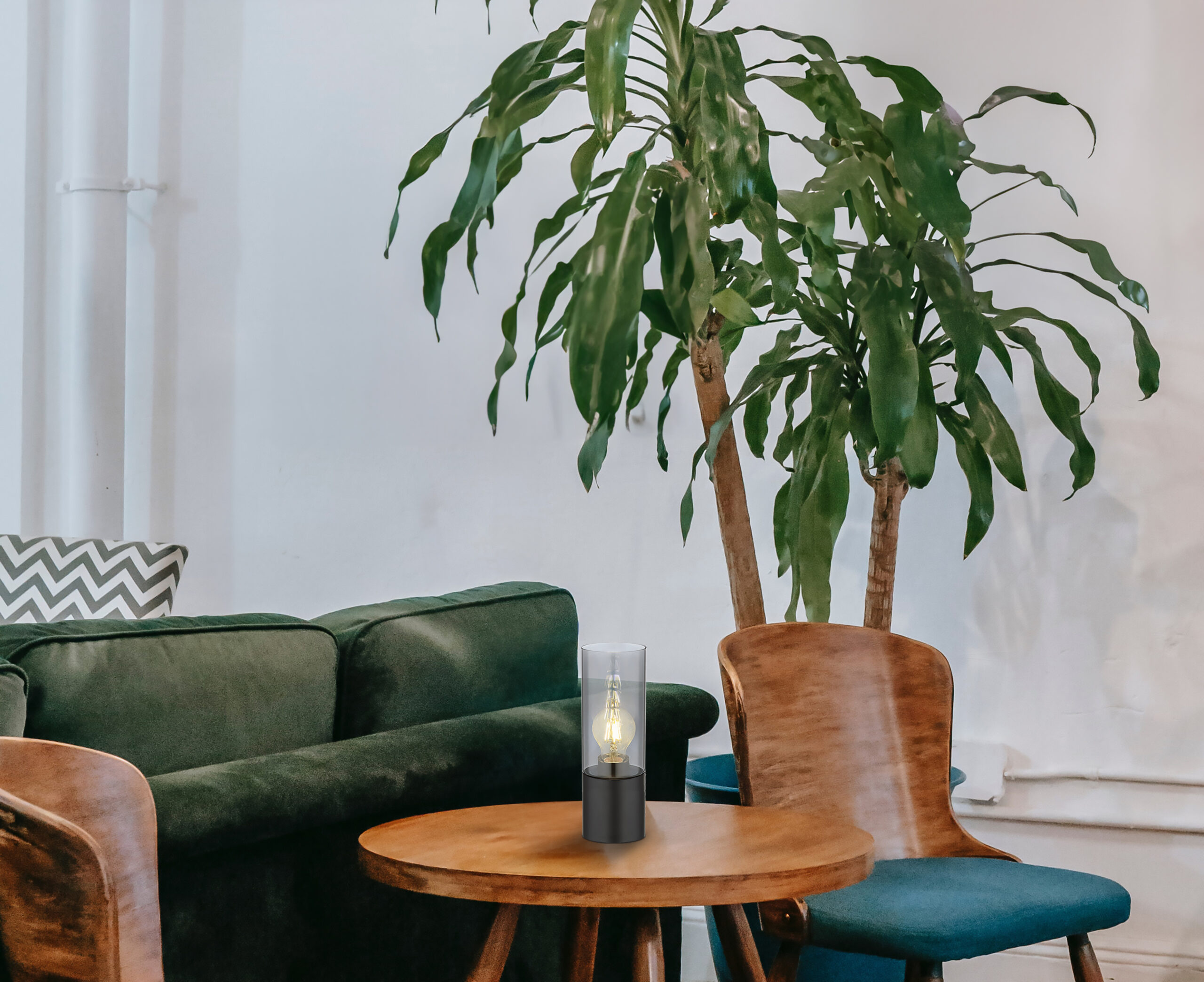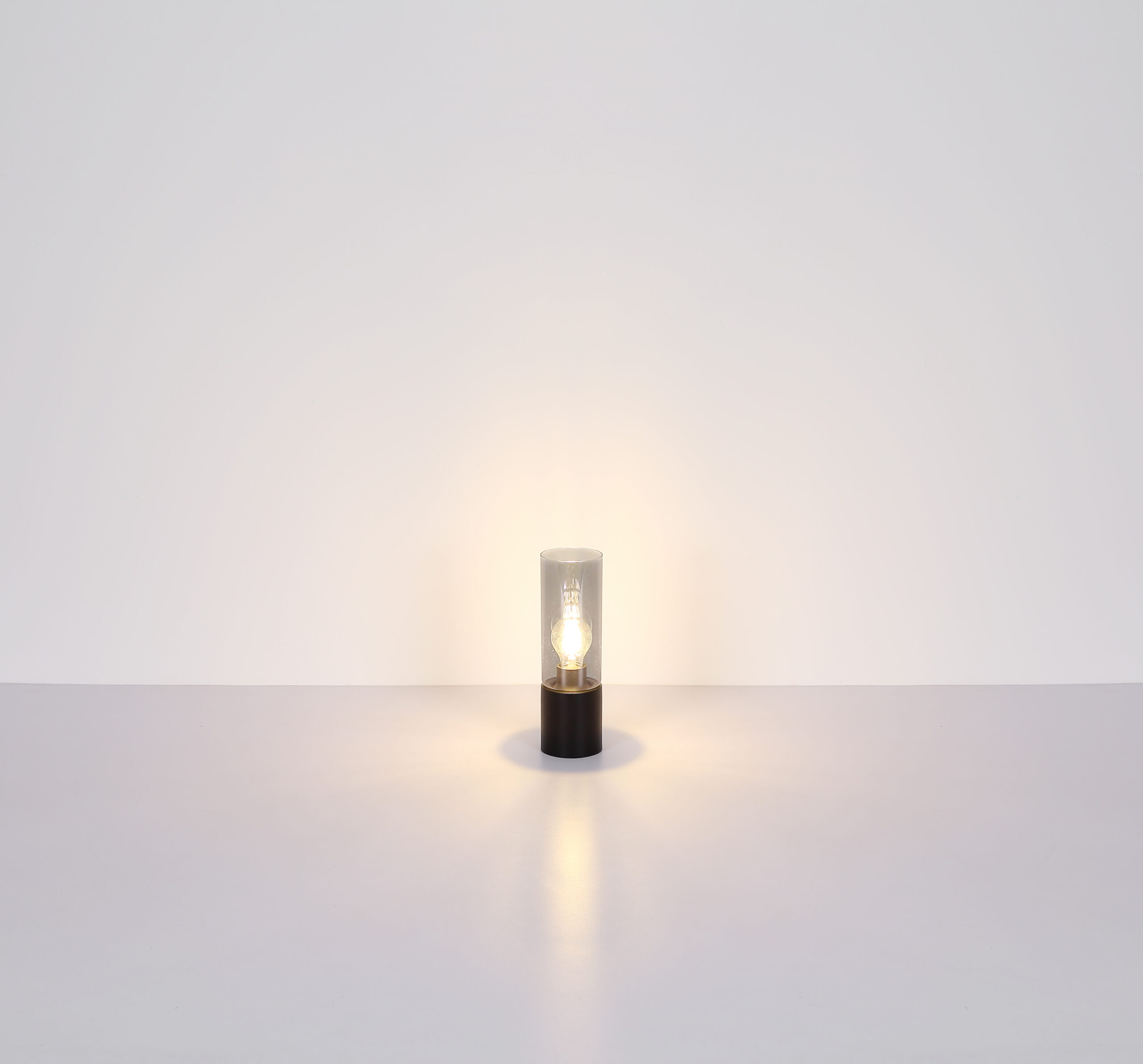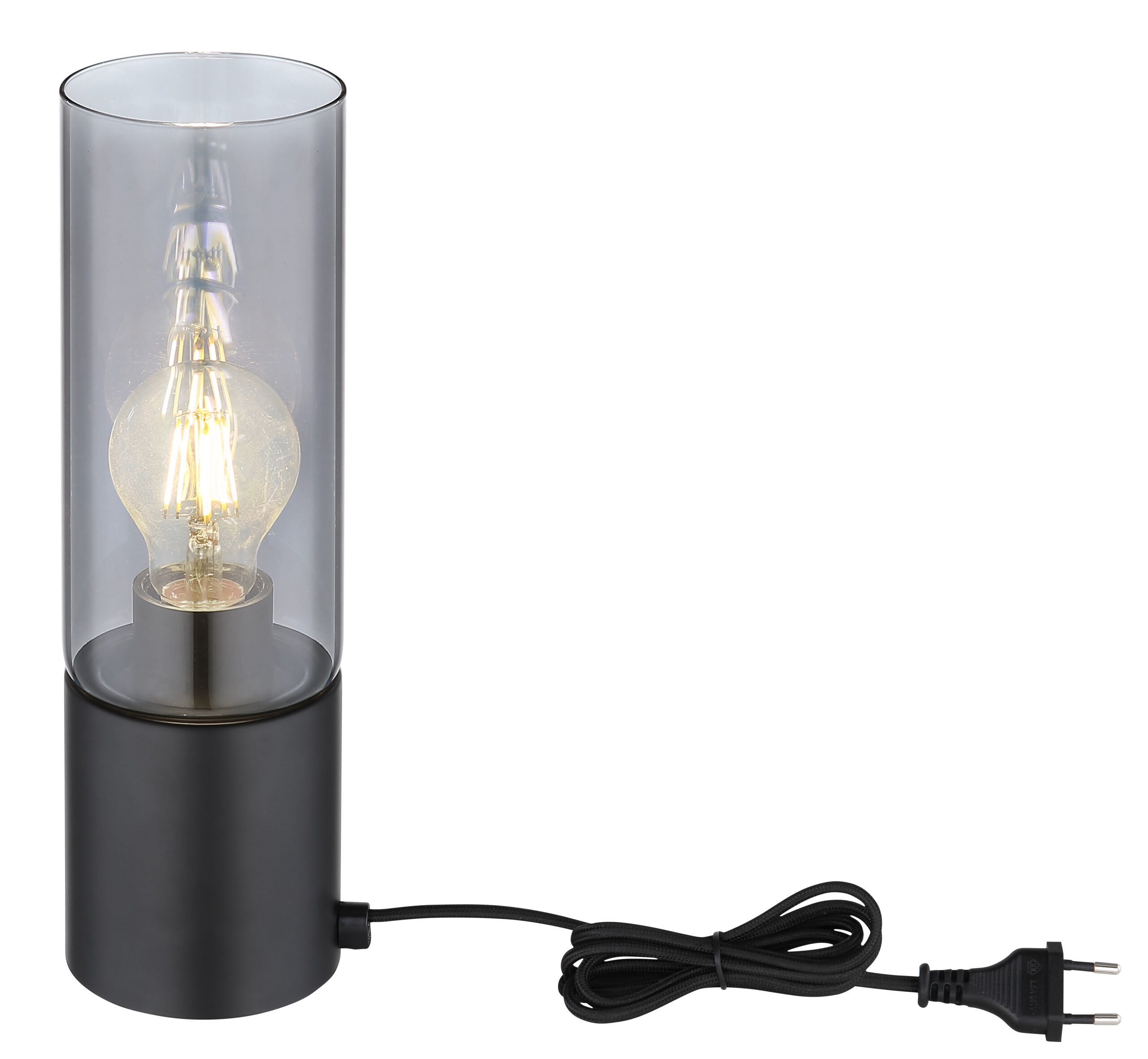 Ovu jednostavnu stonu lampu iz serije Annika karakterišu boje i dizajn. Na crnom okruglom stalku (Ø9cm) nalazi se utičnica E27 sa cilindričnim sjenilom u dimljenom staklu i visine 30cm. Utičnica E27 vam omogućava da slobodno birate, do maksimalne snage od 25 vati, putem svijetle boje i svjetline. Sa ostalim modelima ove serije možete super upotpuniti svoj dnevni boravak.