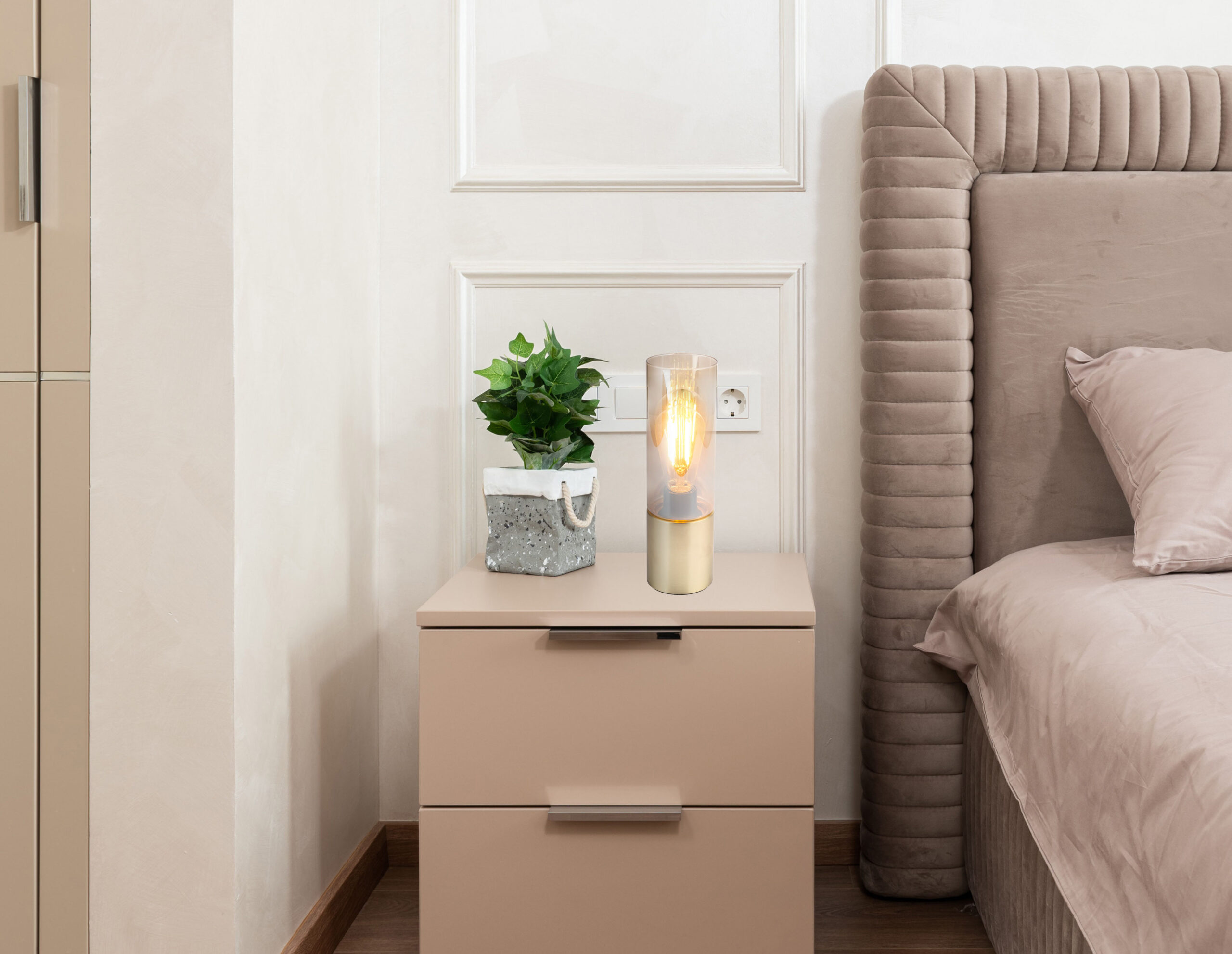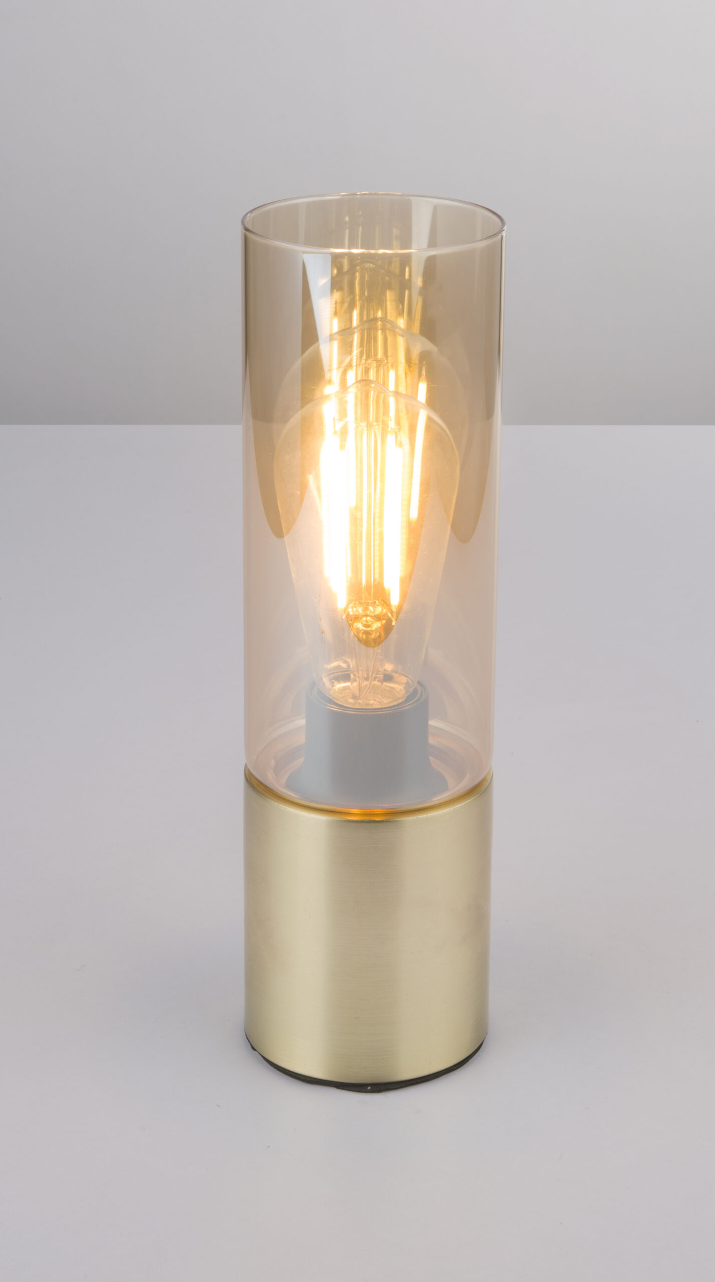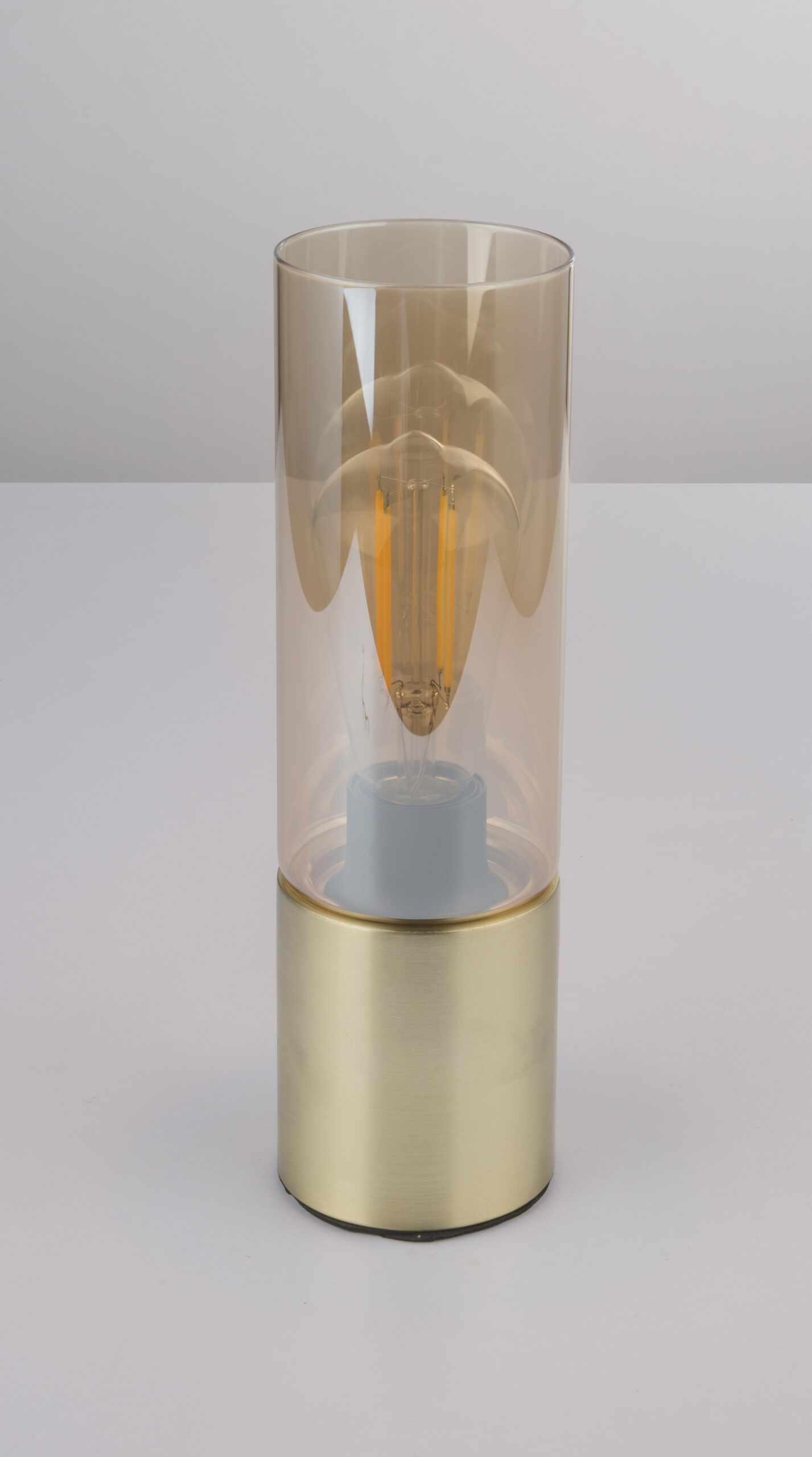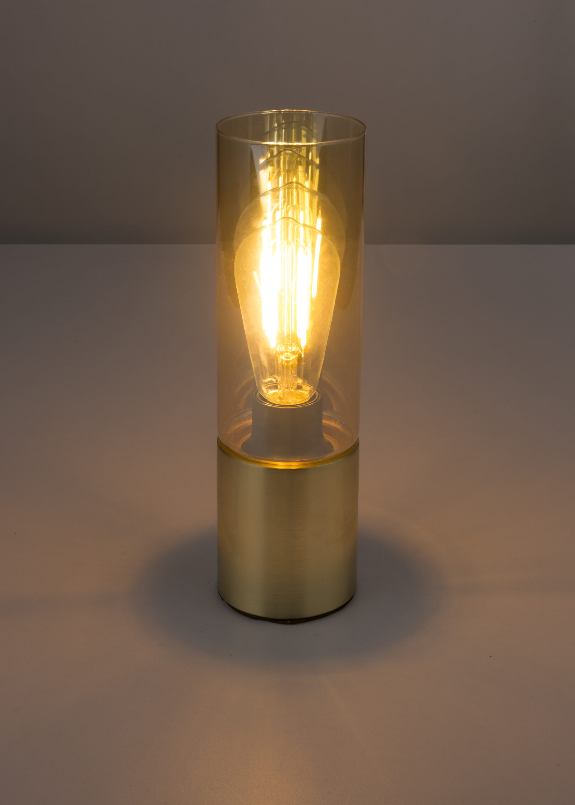 Kompaktna stolna lampa od mesinga Annika (visoka 30 cm), diskretnog je dizajna i stoga se može integrirati u svaku prostoriju. Cilindrični sjenilo (ø 9cm) je napravljeno od ćilibarnog stakla, kada se uključi, sijalica vrlo nježno svijetli. Posebnost ove svetiljke je to što ima prekidač na dodir. Ovo vam omogućava da lako uključite i isključite lampu. S obzirom da je svetiljka opremljena grlom E27, možete odrediti sijalicu do maksimalno 25 vati, kao i boju svetla i intenzitet svetlosti. Preporučujemo LED sijalice, zbog njihove uštede energije i dugovečnosti. Annika se odlično uklapa kao noćna lampa, ali se može postaviti i na bočne stolove i komode u dnevnom boravku, gdje stvara ugodno akcentno osvjetljenje.