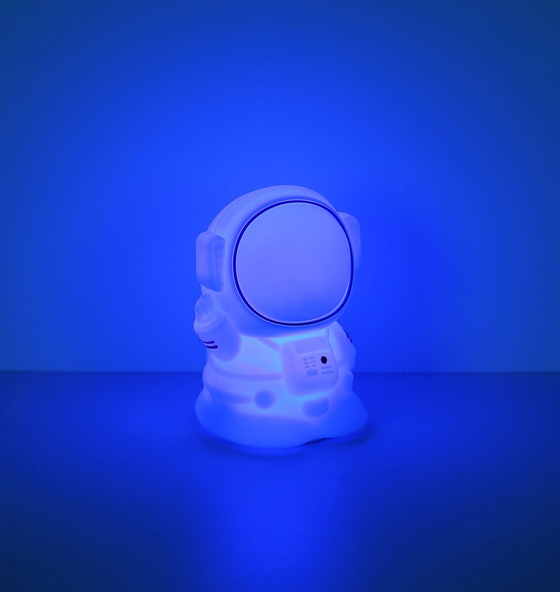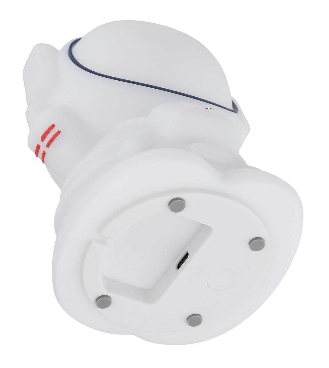 ASTRO noćno svjetlo u obliku slatkog astronauta unosi galaktičku atmosferu u bilo koju dječju sobu! Bilo da se koristi kao umirujuće noćno svjetlo ili ukrasna stolna lampa, ovo svjetleće čudo stvara nježno, atmosfersko osvjetljenje. Mat bijelo plastično kućište s plavim i crvenim detaljima daje lampi moderan, razigran izgled. Integrirani LED svijetli u različitim RGB bojama koje se mogu zaključati pritiskom na dugme. Sa kontrolama za uključivanje/isključivanje dodirom i zatamnjivanje na dodir, rukovanje je jednostavno i intuitivno. Sa osvjetljenjem od 20 lumena, ASTRO emituje ugodno svjetlo bez odsjaja—savršeno za uspavljivanje. Praktični tajmer automatski gasi lampu nakon 30 minuta. Vrijeme rada je cca. 5 sati, vrijeme punjenja cca. 3 sata. Noćno svjetlo čak i svijetli tokom punjenja. Uključuje adapter, USB kabel za punjenje i USB kabel. Dimenzije: D 104 mm x Š 96 mm.