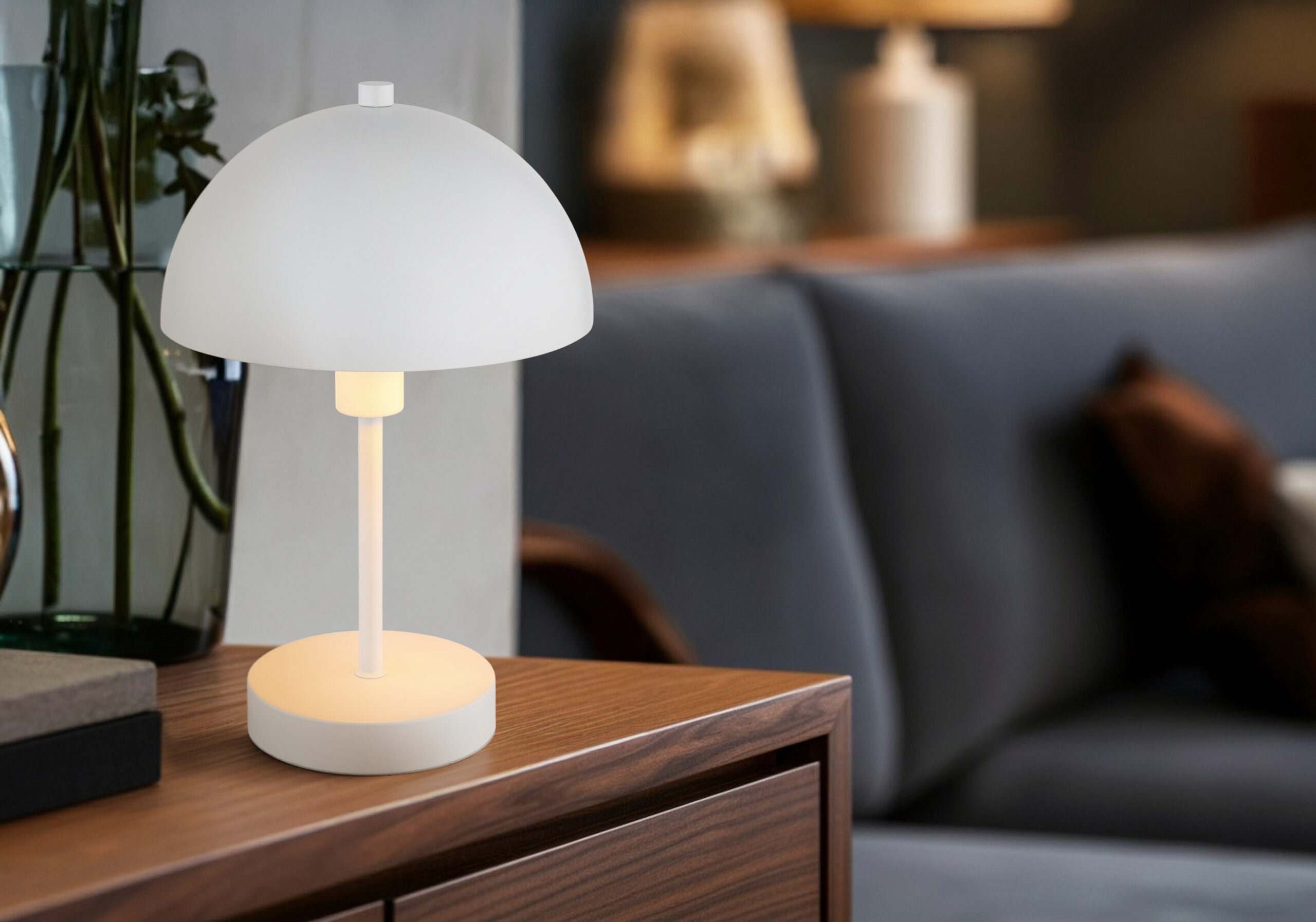 Stolna lampa ATOMA I impresionira svojim jednostavnim i elegantnim dizajnom u obliku gljive. Tijelo izrađeno od mat bijelog metala i bijeli, mat metalni sjenilo daju svjetiljci moderan, minimalistički izgled koji se savršeno uklapa u širok izbor stilova opremanja. Preklopni prekidač na kablu osigurava praktičan rad, tako da možete lako uključiti i isključiti svjetlo. Svjetlo je opremljeno sijalicom E14 (nije uključena), što vam daje slobodu da prilagodite svjetlinu po svom ukusu. ATOMA I je idealan za upotrebu u dnevnim sobama, na radnom stolu ili kao noćna lampa. Njegov puristički dizajn i visokokvalitetna izrada čine ga modernim privlačnim za oči u svakoj prostoriji, dok istovremeno pruža ugodan izvor svjetlosti.