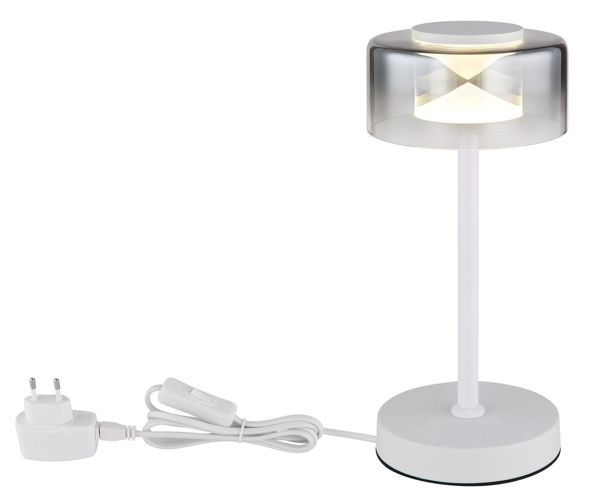 Stolna lampa BELINDA kombinuje moderan dizajn sa funkcionalnom rasvetom za vaš dom. Tijelo od bijelo obojenog metala daje svjetiljci moderan, elegantan izgled, dok stakleni sjenilo u boji dima daje mekan i atmosferski svjetlosni efekat. S promjerom od 150 mm, kompaktna lampa se može koristiti na razne načine – bilo na radnom stolu, noćnom ormariću ili kao ukrasni element u dnevnoj sobi. Integrirana LED tehnologija isporučuje svjetlosni tok od 300 lumena i osigurava ugodnu svjetlinu uz neutralnu temperaturu boje od 4000 K. Pogodno se upravlja preko prekidača na kablu, što ga čini lakim za korištenje. Zahvaljujući modernoj LED tehnologiji, stolna lampa BELINDA nije samo energetski efikasna, već je i posebno izdržljiva. Postavite elegantne akcente uz BELINDA i uživajte u harmoničnom ambijentu osvjetljenja u svojim sobama.