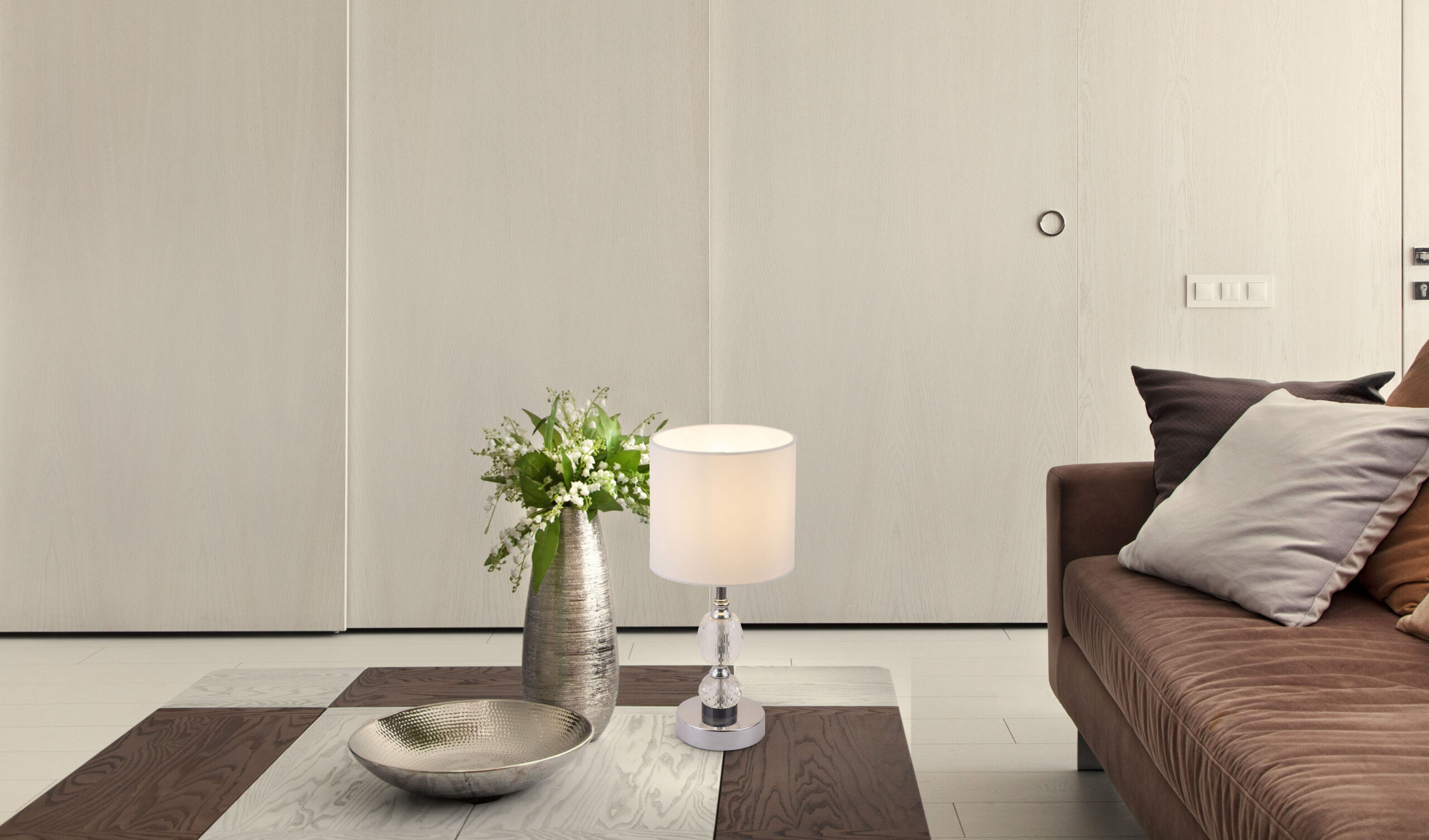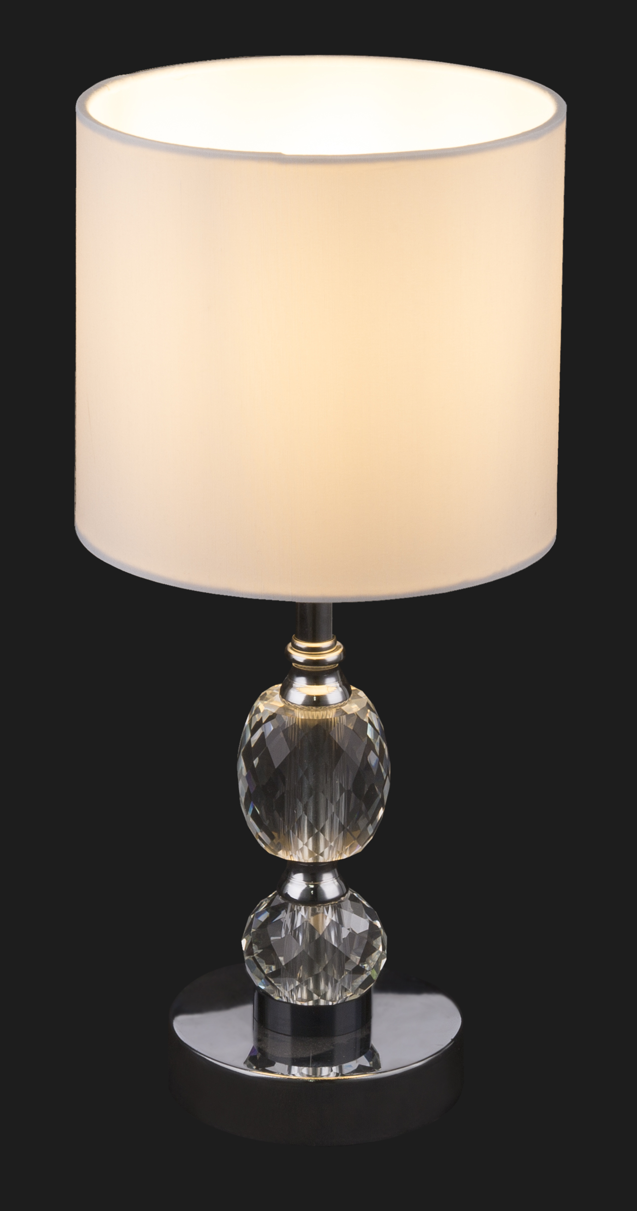 Upečatljivo elegantna i plemenita stolna lampa od 47 cm ove serije modela odlikuje se bezvremenskim dizajnom i odličnim materijalima. Bijelo okruglo tekstilno sjenilo (Ø21cm), pričvršćeno na veliku stopu od hromiranog metala i prozirnog kristala, klasik je među stolnim lampama. Dok ova unutrašnja lampa ima šal za uključivanje/isključivanje, dostupno grlo E14 vam omogućava da sami odredite sijalicu, a time i intenzitet svjetla i boju svjetla (maks. 40W). Zbog uštede energije i dugovečnosti preporučujemo LED lampe.
