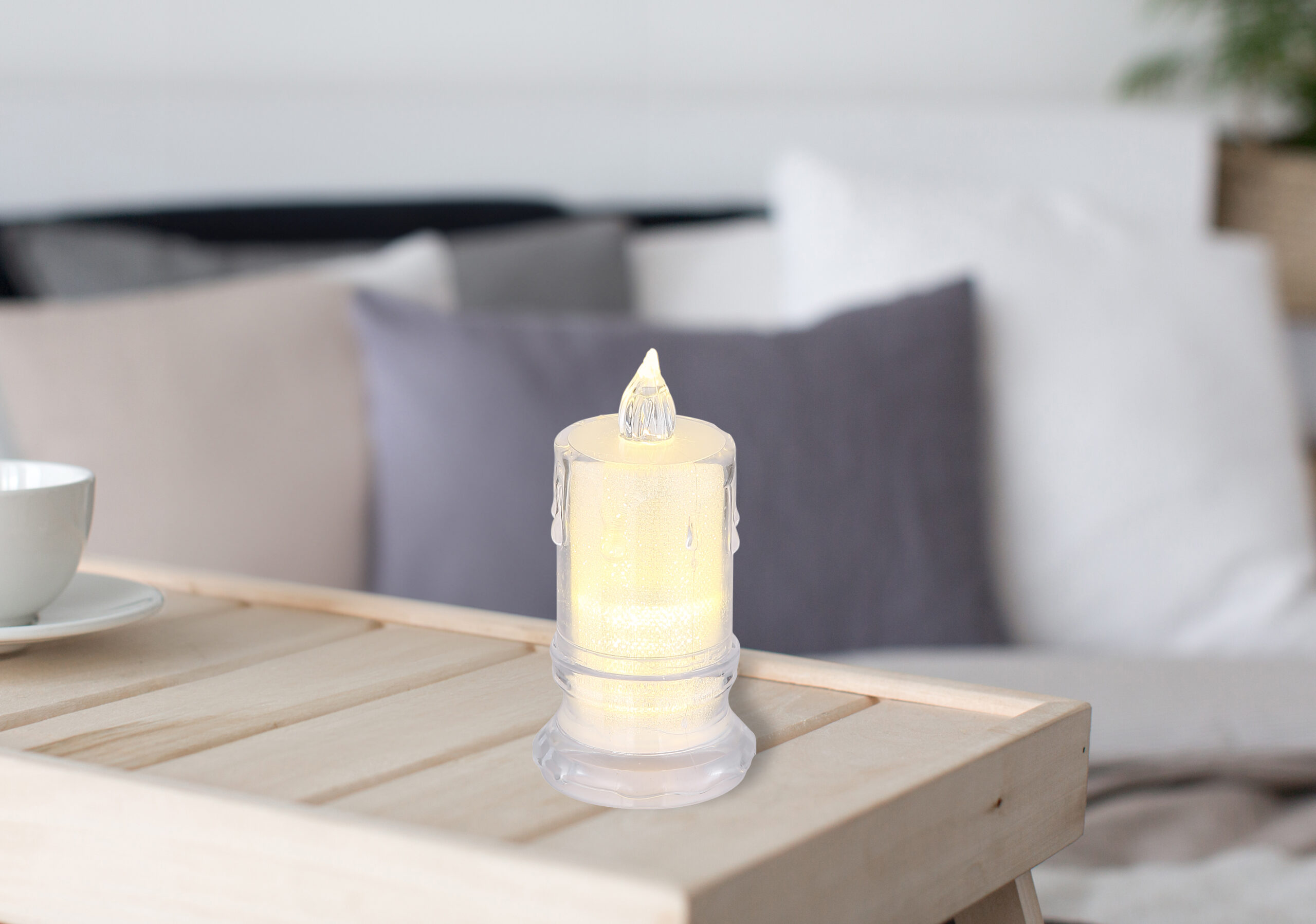 Otkrijte stonu lampu CANDLE, elegantan set od 2 svijeće koje će dodati poseban štih vašem životnom prostoru. Dvije svijeće su postavljene na okrugle okvire i izrađene su od prozirne plastike, koja ima plemeniti izgled. Sjenila su izrađene od plastike i imaju satenski finiš koji ima elegantan sjaj. Klizni prekidač omogućava lako i jednostavno upravljanje rasvjetom. Sa prečnikom od 45 mm, stona lampa je idealna za upotrebu na malim stolovima ili stolovima. Svjetiljka ima snagu od 22 lumena i temperaturu boje od 2900K, što proizvodi toplo, prigušeno svjetlo. Stolna lampa CANDLE je savršena polazna tačka za stilizovanu dekoraciju i zasigurno će poboljšati ukupni efekat vašeg prostora.