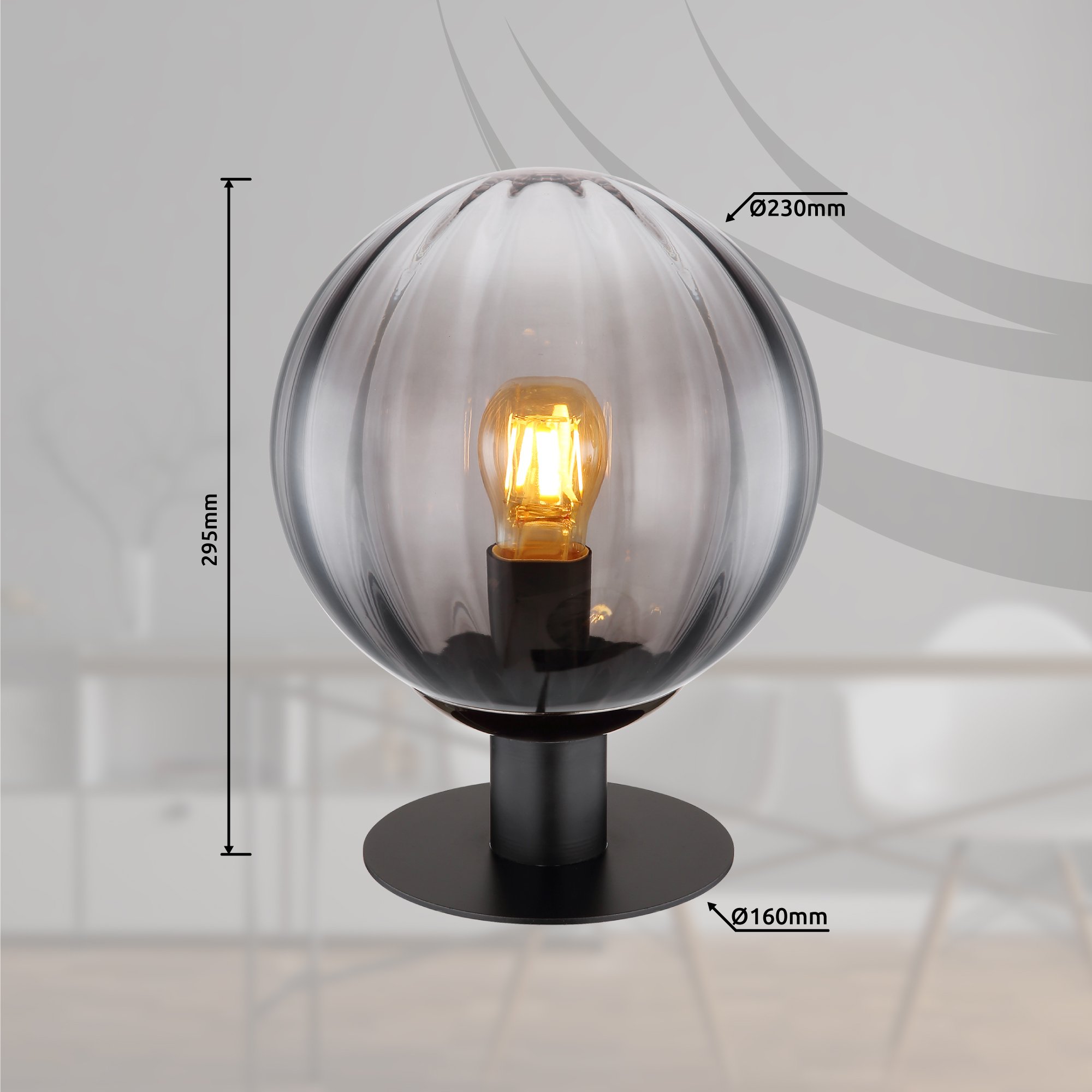Stona lampa je izrađena od crnog mat metala i ima prozirno staklo u boji dima. Kabl je izrađen od crnog PVC-a i ima preklopni prekidač na kablu. Stona lampa je prečnika 230mm i visine 295mm. Dužina kabla je 1500 mm. Stona lampa se isporučuje bez sijalice E27 12W 230V. Sa ovom modernom stolnom lampom možete stvoriti ugodnu atmosferu u svakoj prostoriji. Staklo u boji dima pruža ugodnu igru svjetla, a crni metal lampi daje moderan izgled. Naručite sada i unesite moderan dizajn u svoj dom!